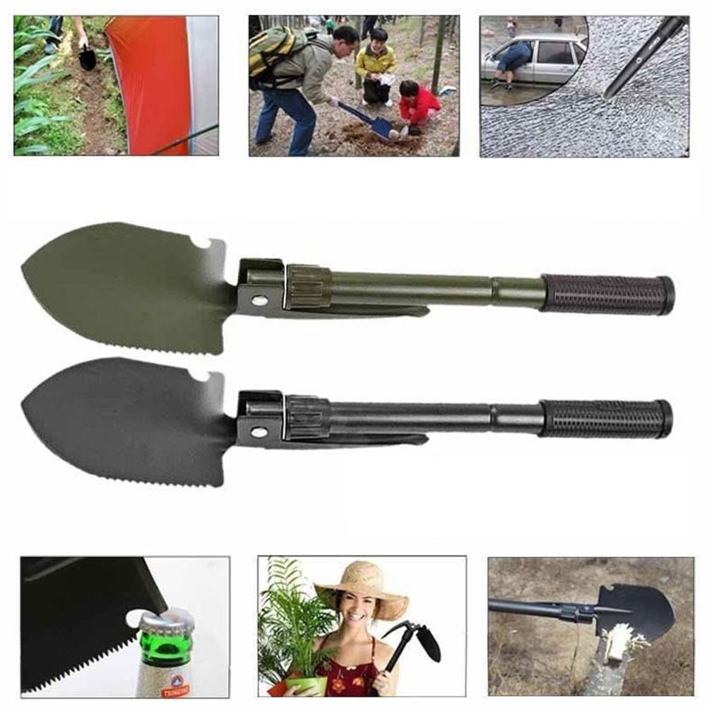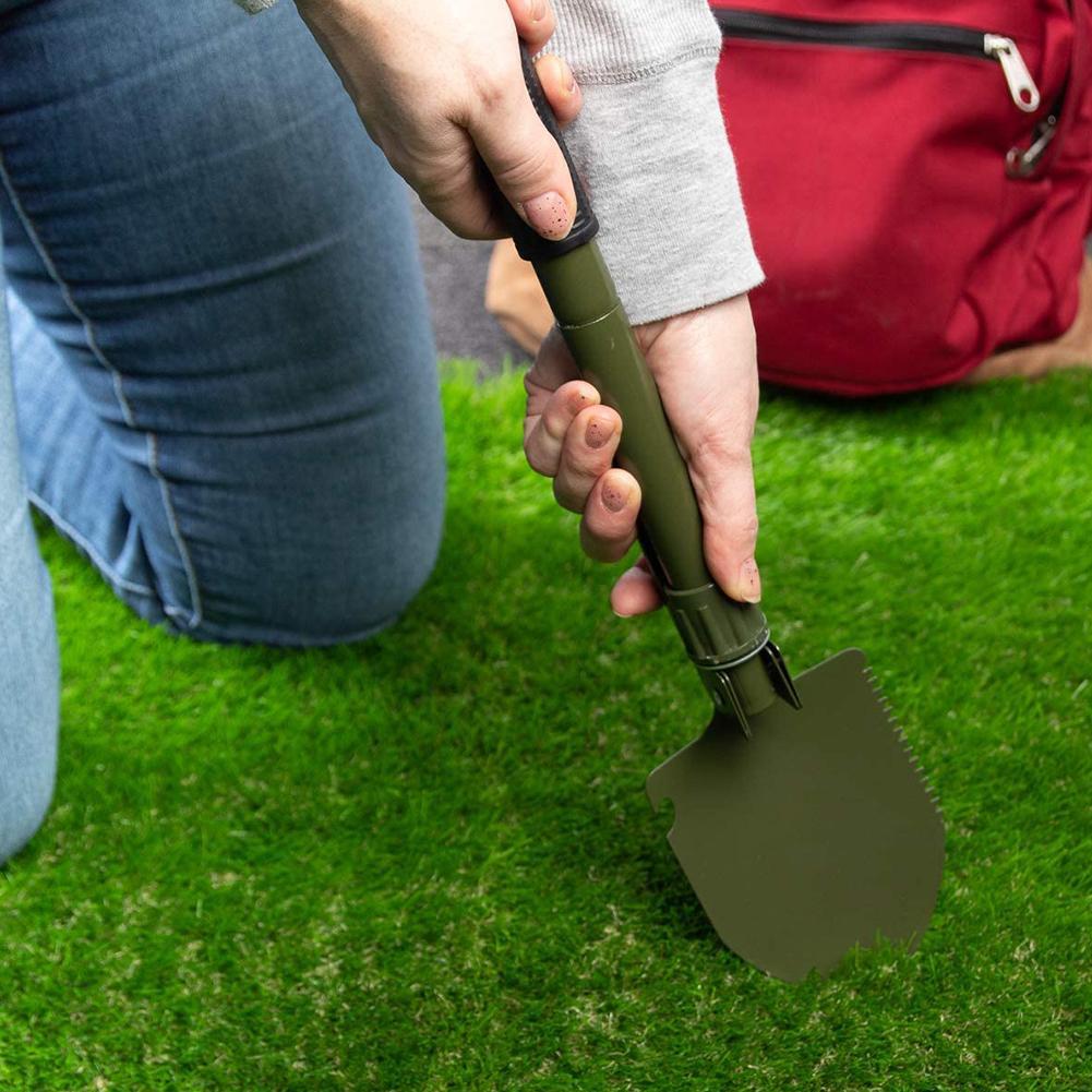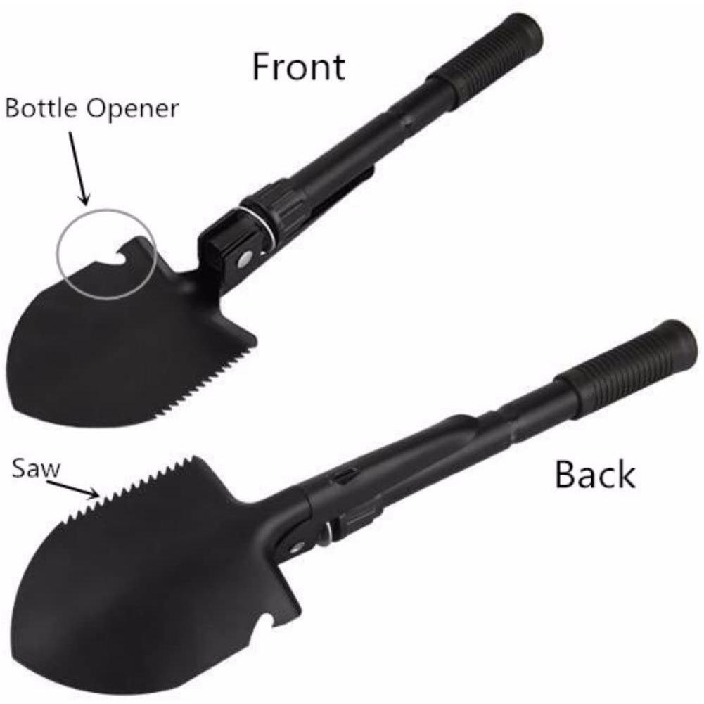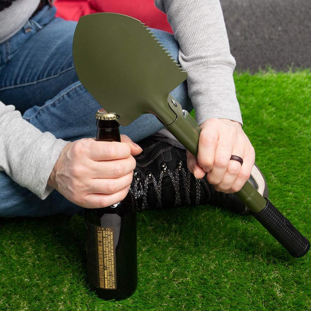 Indispensabile per ogni necessità grazie ai 5 attrezzi in 1: pala, piccone, sega, bussola e apribottiglie.