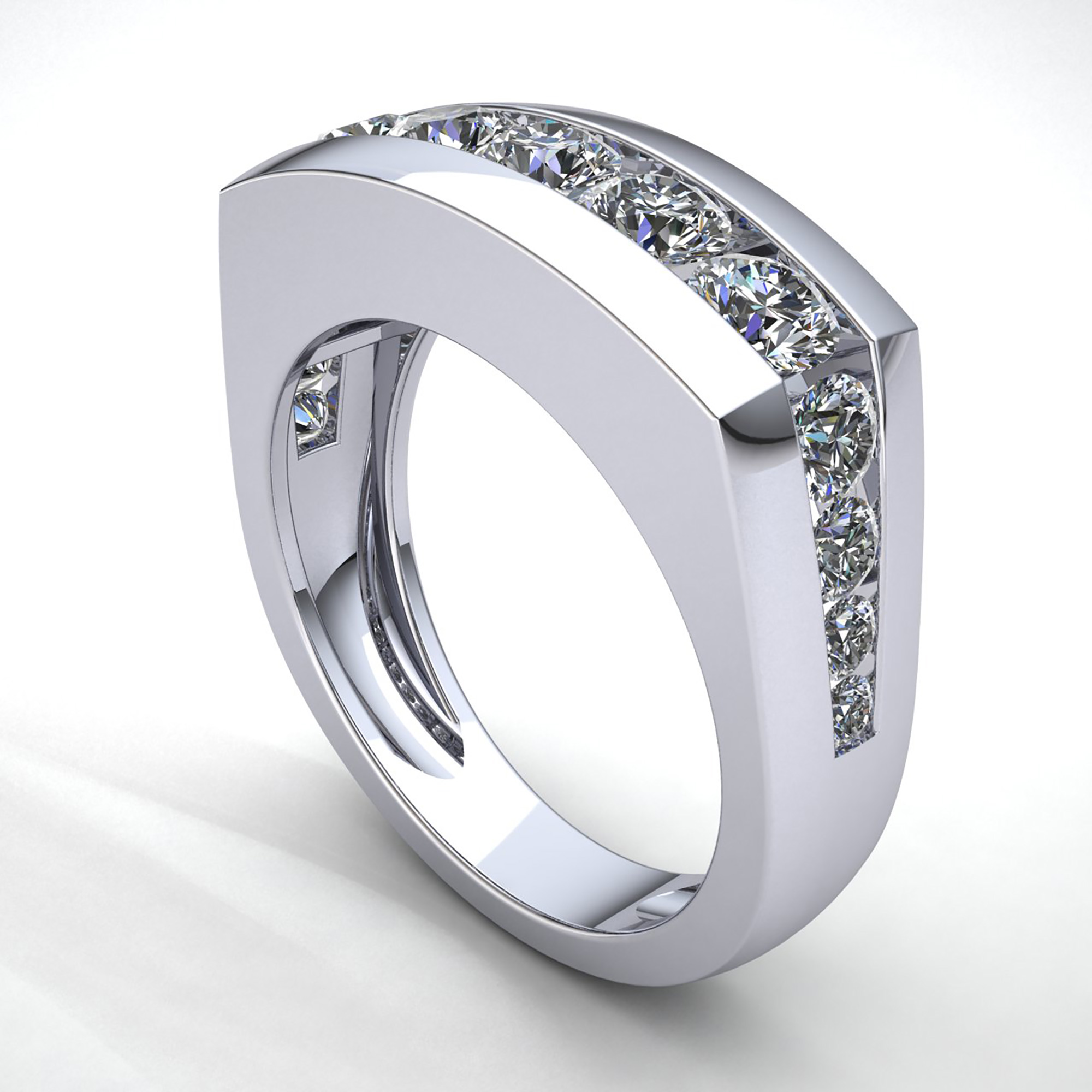 We realize buying jewelry is an investment decision just as much as it is an emotional decision, and we try to give you the best in both those respects. Please offer us the opportunity to be at your service by contacting us and letting us help make your vision a reality. The item you are currently viewing can be made in a whole range of diamond colors, clarities, and is available in multiple metals. We can also make matching mens/womens rings, engagement ring versions of wedding bands, matching bands, or something completely different. Please contact us for pricing. computer rendered pics. and additional information. Handling Time
