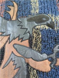 chunky acrylic knit w/ leather