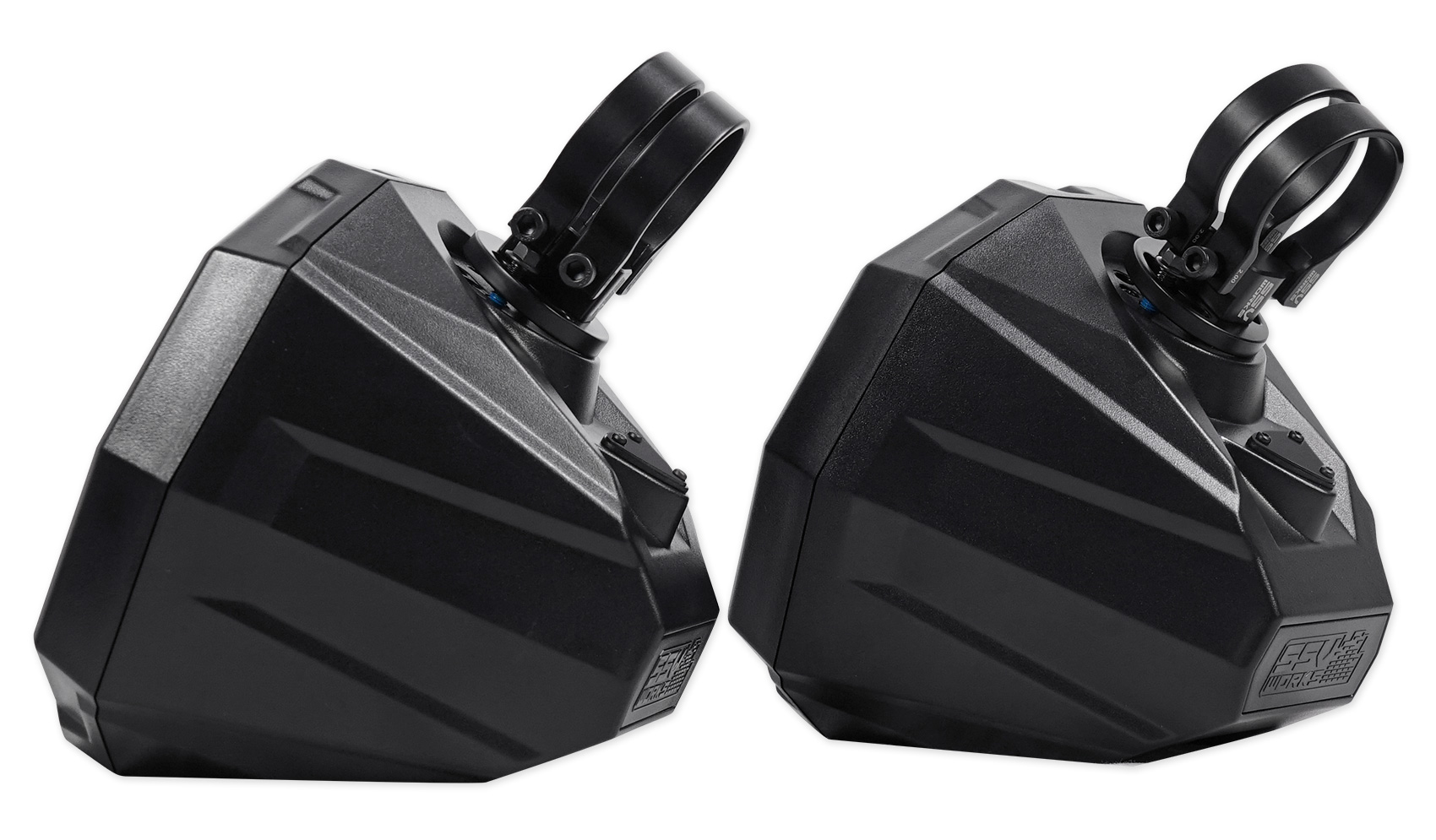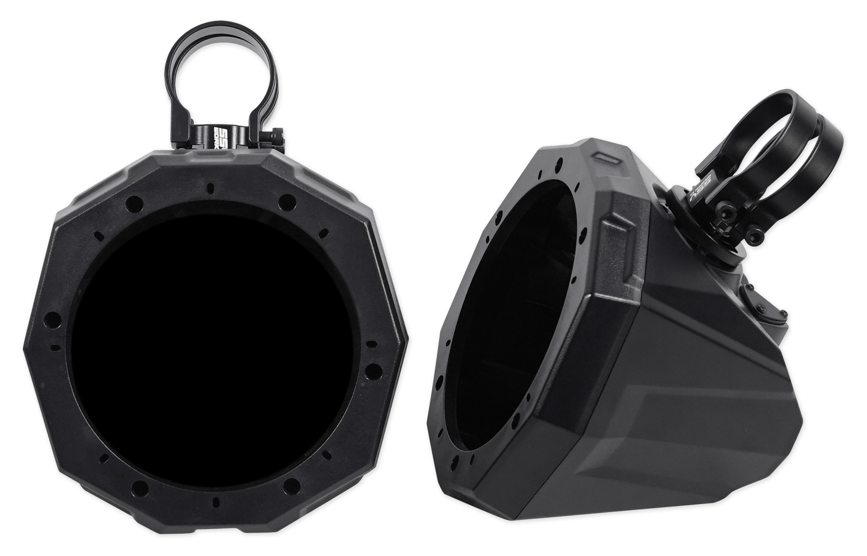 SSV Works Cage Mount Pods are designed for 6.5" speakers when you need more sound in your Side by Side. Unlike wakeboard towers, our mini pods are designed to provide sound to the passengers without blocking visibility. They are finished in a black texture and is stylized to match factory interior textures and can be custom painted to match your color scheme. Brand-new redesigned dual clamping system allows you 360° rotation while on the cage. Unlike other cage pods where you need to find its position before the clamp goes on the bar.