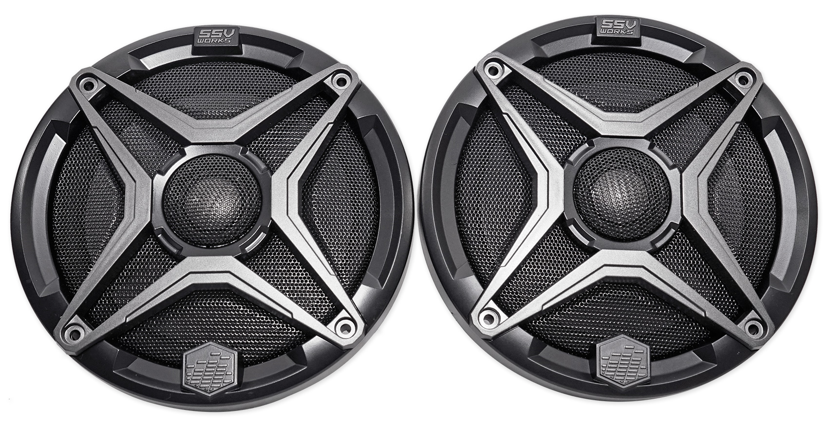 SSV Works’ new 6.5” Marine-Grade weatherproof speakers will transform the sound of your UTV’s stereo. Get louder, cleaner sound even in the dirt and mud. Engineered specifically for Powersports, the new WP-A6 WeatherProof speaker brings audiophile grade components to the outdoors. The 25mm Ti- tweeter creates crisp brilliant highs engineered to be heard outdoors, even in a helmet…over the motor…haulin’ down the trails. The grille mounted tweeter allows for peak cone travel creating maximum output while providing a low profile with optimal weatherproofing.