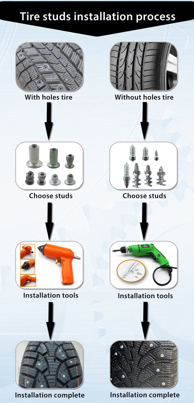 with pre-drilled holes for studs, you also need the correct size stud. The tire stud number