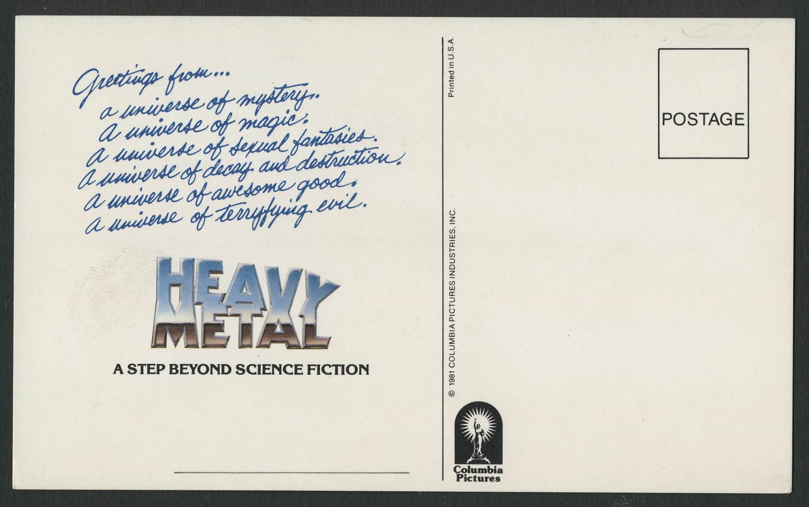 Heavy Metal is a 1981 Canadian adult animated science fantasy anthology film directed by Gerald Potterton, produced by Ivan Reitman and Leonard Mogel, who also was the publisher of Heavy Metal magazine, which was the basis for the film. It starred the voices of Rodger Bumpass, Jackie Burroughs, John Candy, Joe Flaherty, Don Francks, Martin Lavut, Marilyn Lightstone, Eugene Levy, Alice Playten, Harold Ramis, Percy Rodriguez, Susan Roman, Richard Romanus, August Schellenberg, John Vernon, and Zal Yanovsky. The screenplay was written by Daniel Goldberg and Len Blum.The film is an anthology of various science fiction and fantasy stories tied together by a single theme of an evil force that is "the sum of all evils". It was adapted from Heavy Metal magazine and original stories in the same spirit. Like the magazine, the film features a great deal of graphic violence, sexuality, and nudity. Its production was expedited by having several animation houses working simultaneously on different segments. Despite the mixed reviews by film critics on its initial release, the film was a modest success at the box office and has since achieved cult status. The film's influential soundtrack was packaged by music manager Irving Azoff and included several popular rock bands and artists, including Black Sabbath, Blue Öyster Cult, Sammy Hagar, Don Felder, Cheap Trick, DEVO, Journey, and Nazareth, among others.