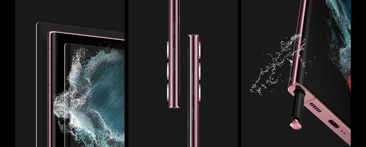 The polished Armor Aluminum frame acts like a suit of armor, and the front and rear are equipped with the tough Corning® Gorilla® Glass Victus®+. And both Galaxy S22 Ultra and S Pen are IP68 rated.