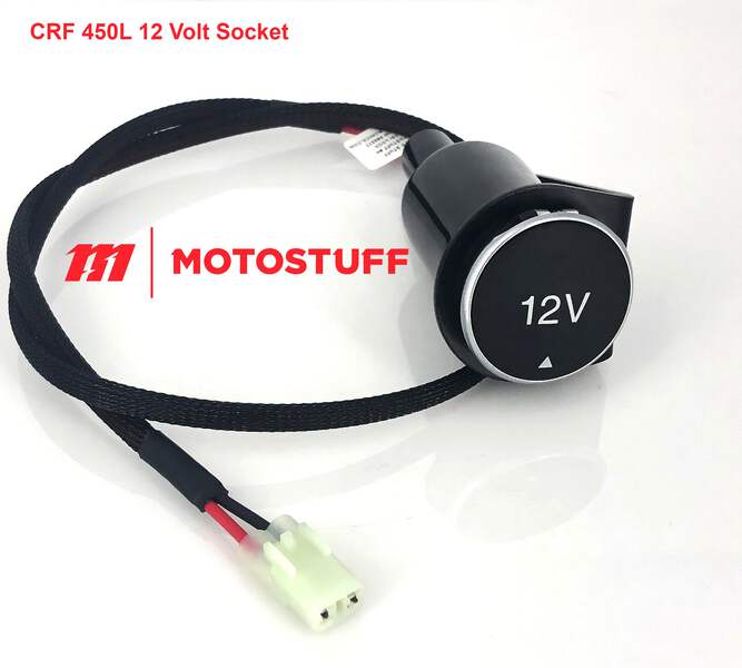 HONDA was nice enough to include a handy 10 AMP* switched accessory lead connector that is clipped to a metal bracket just behind the bottom of the left radiator (see photo in product listing), however, they have yet to release an accessory lead to plug into it! So we picked up the ball and sourced the correct original HONDA waterproof connectors and built this 12-volt socket version. Leads are 24" long and allow for safe routing from the lower-left radiator area following the factory harness routing to the left upper triple clamp bolt for a quick and secure mount.