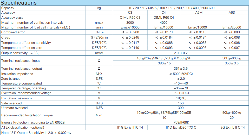 BM6G-C3-20kg-3B 50 kg 100 kg 200 kg 500kg Waterproof Stainless Steel Load Cell