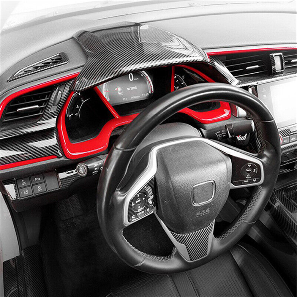 Carbon Fiber Look Front Dashboard Cover Trim For Honda Civic 10th Gen 16-21 LHD