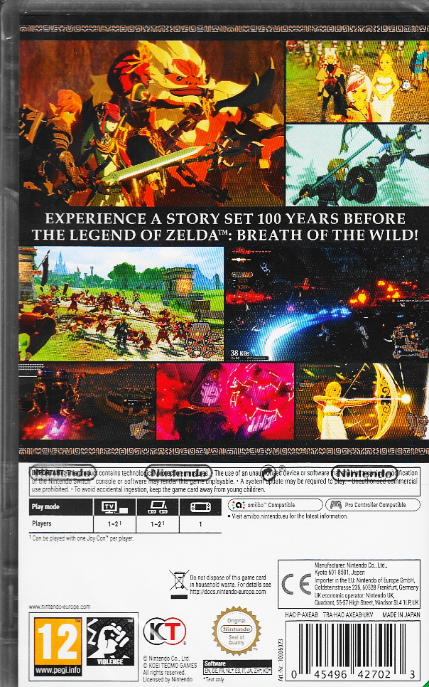 FEATURESEine bekannte Welt: Entdecke Hyrule aus einer völlig neuen Perspektive, bevor die Verheerung Ganon zuschlug.Bekannte Gesichter: Führe Link, Zelda und die Recken Hyrules in die Schlacht gegen finstere Mächte!Rasante Kämpfe: Setze mächtige Waffen und Shiekah-Module ein, um gegen gegnerische Armeen zu bestehen und kraftvolle Monster zu besiegen.Eine neue Geschichte: Entdecke eine einzigartige Handlung, sowohl auf dem Schlachtfeld als auch in vertonten Zwischensequenzen. Versuche, die Große Verheerung aufzuhalten und Hyrule zu retten!Gemeinsam stärker: Ziehe gemeinsam mit einem weiteren Spieler auf einer Nintendo Switch-Konsole in die Schlacht und bekämpft die Verheerung Ganon als Team.WAS SIE NOCH ÜBER DAS PRODUKT WISSEN SOLLTENNeu und originalverpacktEuropäische VerkaufsversionSpielsprache: Deutsch, Englisch, Französisch, Italienisch, Japanisch, SpanischTexte: Deutsch, Englisch, Französisch, Italienisch, Japanisch, Spanisch