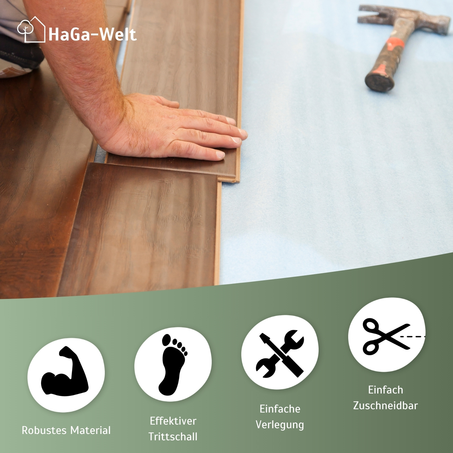 Wenn es um Trittschallschutz geht, ist unsere HaGa® Trittschalldämmung die ideale Wahl. Ob Trittschalldämmung Laminat, Trittschalldämmung Vinyl oder unter Parkett – diese Dämmfolie passt sich hervorragend an und liefert eine effektive Lösung zur Geräuschminimierung.