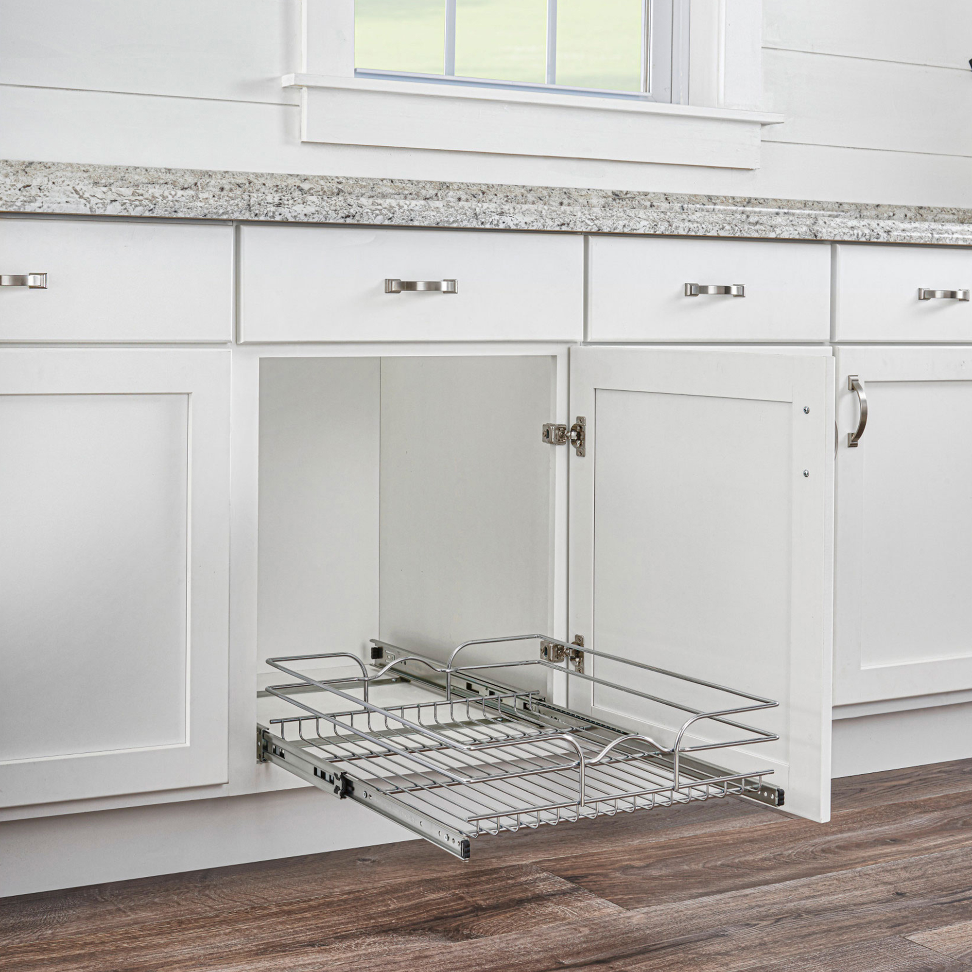 Organize your cabinets with simplicity and style with the Rev-A-Shelf Kitchen Cabinet Pullout Wire Basket.
