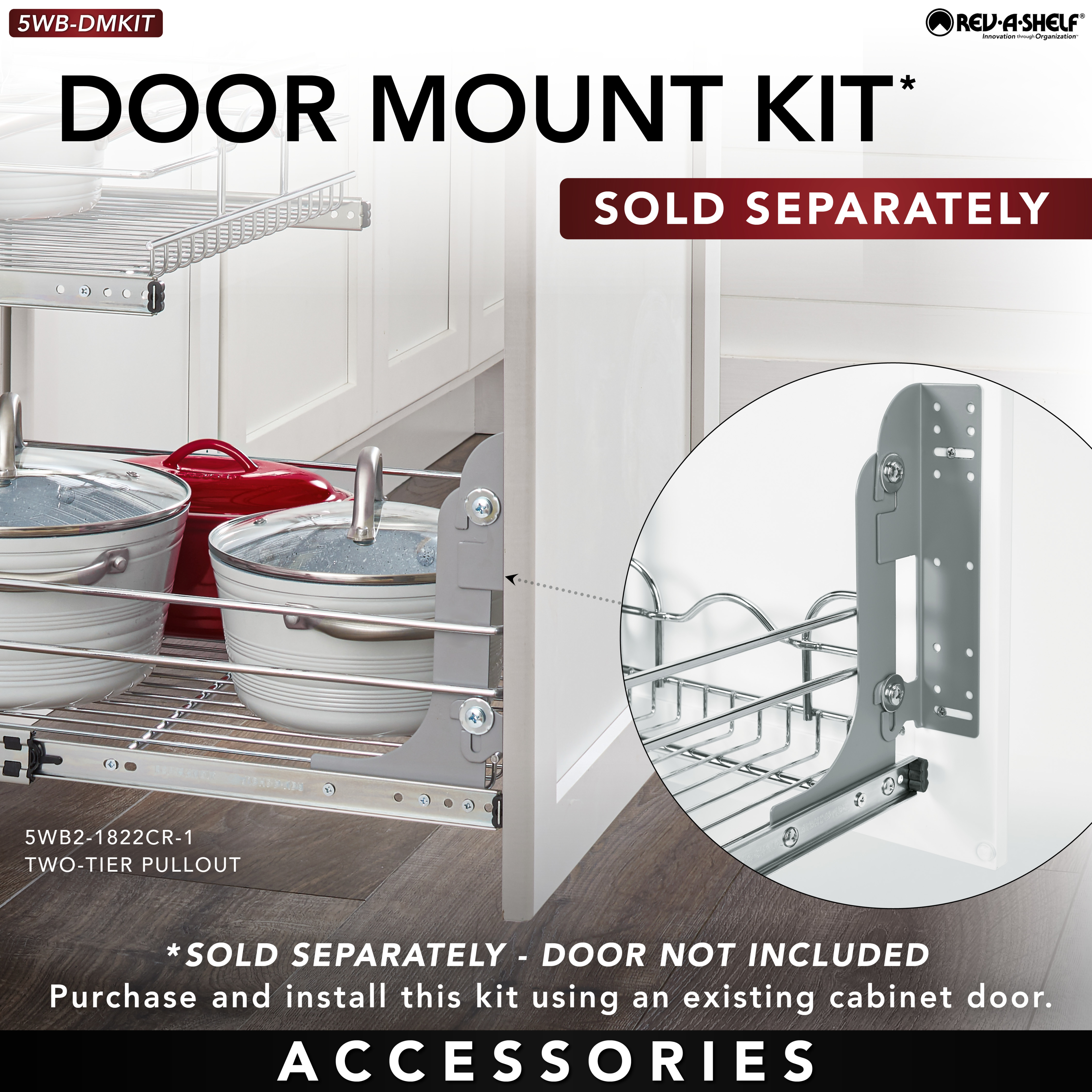 Once installed, the basket and hardware frame measure 22 in. deep, 14.5 in. wide, and 5.56 in. tall. This kitchen cabinet organizer is designed to fit cabinets with an opening width of 14.5 in. to 18 in., making it perfect for maximizing space in your kitchen cabinets. You can even stack multiple units for a tall pantry cabinet. This kitchen cabinet pullout organizer comes with mounting hardware. The optional Door Mount kit (5WB-DMKIT) is sold separately.