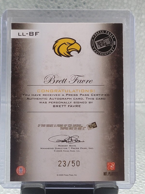 2008 Press Pass Legends Brett Favre Go USM Inscription Auto 23/50!