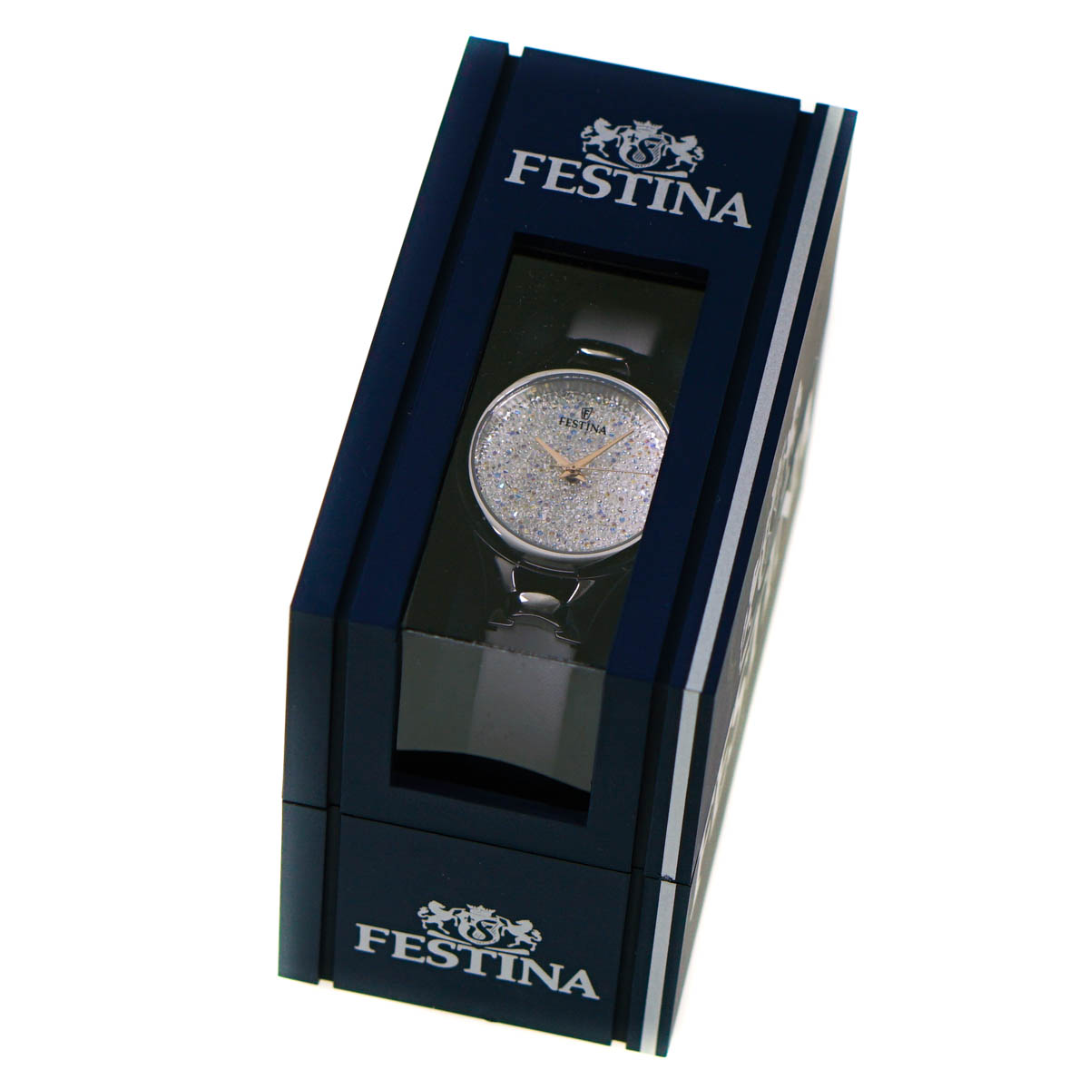 An eye catching women's watch from Festina featuring a highly polish stainless steel case and sparkling dial adorned with Swarovski crystals.