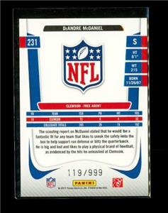 2011 PANINI PRESTIGE ROOKIE DRAFT PICKS Football Card #231 DEANDRE MCDANIEL Free Agent Limited Edition 119/999