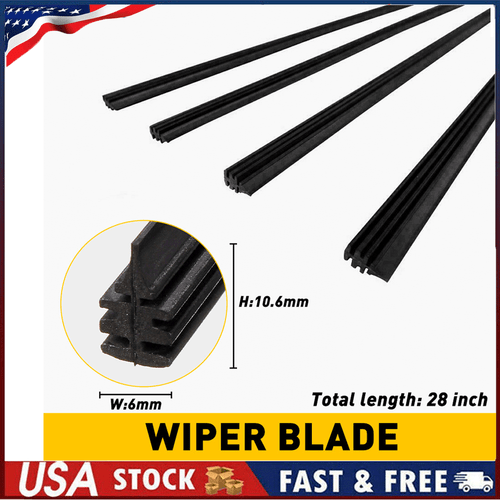 4PCS 28" 6mm Car Bus Rubber Universal Frameless Windshield Wiper Blade Refill