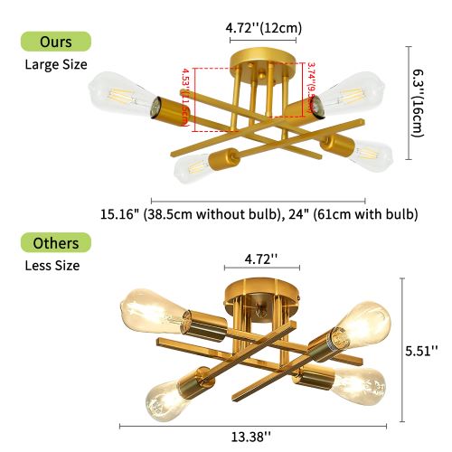 Number of Bulb: 4/6 Bulbs (Bulbs NOT included)