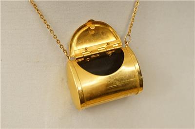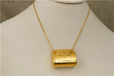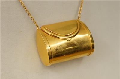 Vintage Gold Tone Metal Doll Purse Accessory 1.5" by 1.25" Chain Strap 7.5" Drop. No smoke or pet odor. Will need a gentle polish.