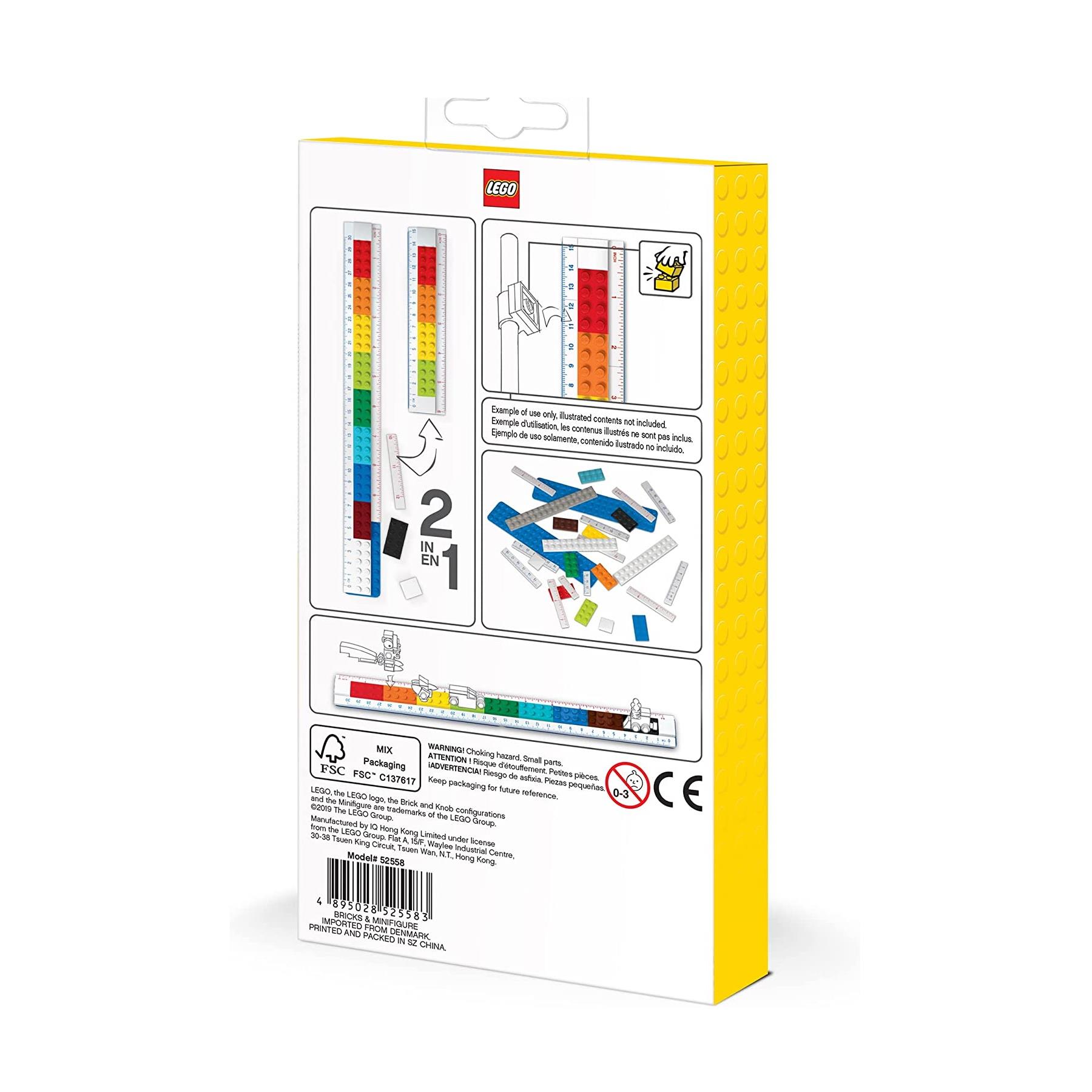 Pack contains: 1x Lego Minifigure and a variety of coloured blocks to assemble the ruler with.
