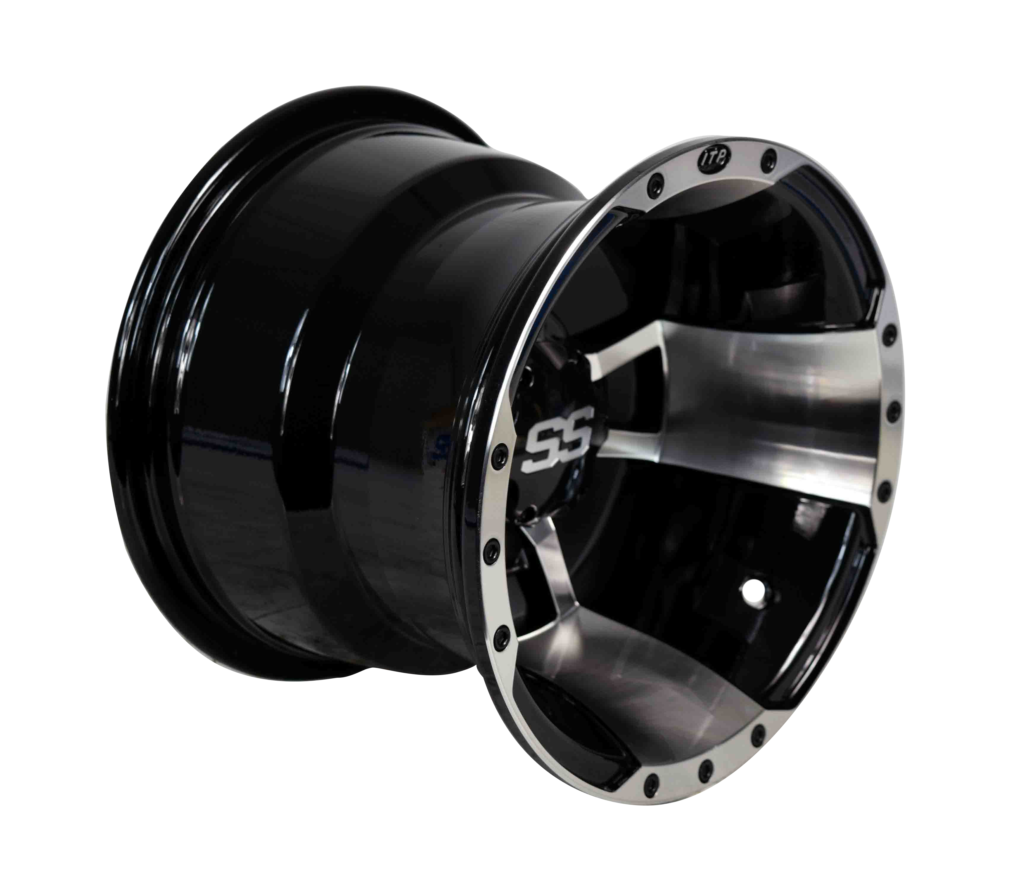 ITP has taken the outstanding features and benefits of its highly successful SS Alloy utility wheel line and applied them to the high-performance ATV market with the release of the all-new SS112 Sport. The one-piece aluminum SS112 Sport wheel uses a bright, diamond-cut machined surface with black accents, all topped with a tough clear coat finish. Like all SS Alloy wheels, a custom SS wheel cap is included. The SS112 Sport wheel is available in 10x5 front and 9x8 or 10x8 rear sizes for most of today's popular sport quads.| SIZE | 10x8 |