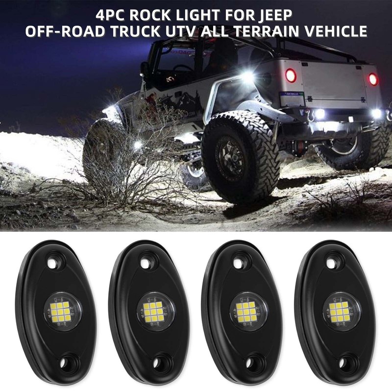 1. Universal fit, this LED rock light made for all makes and models. Mini size to Fit for car, truck, offroad, boat deck, sportbikes, cruisers, touring, ATV, UTV, Golf cart etc. 2. Widely used under vehicles, interior light, car lights, card lights, off-road lights, headlight machinery, agricultural machinery, construction lights, headlight excavators, forklift lights, snow lights, light armored vehicles and other vehicles with lighting. Specifications: