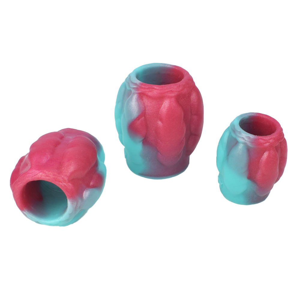 Dehnbare Penismanschette in verschiedenen Größen und im farbenfrohen Design.