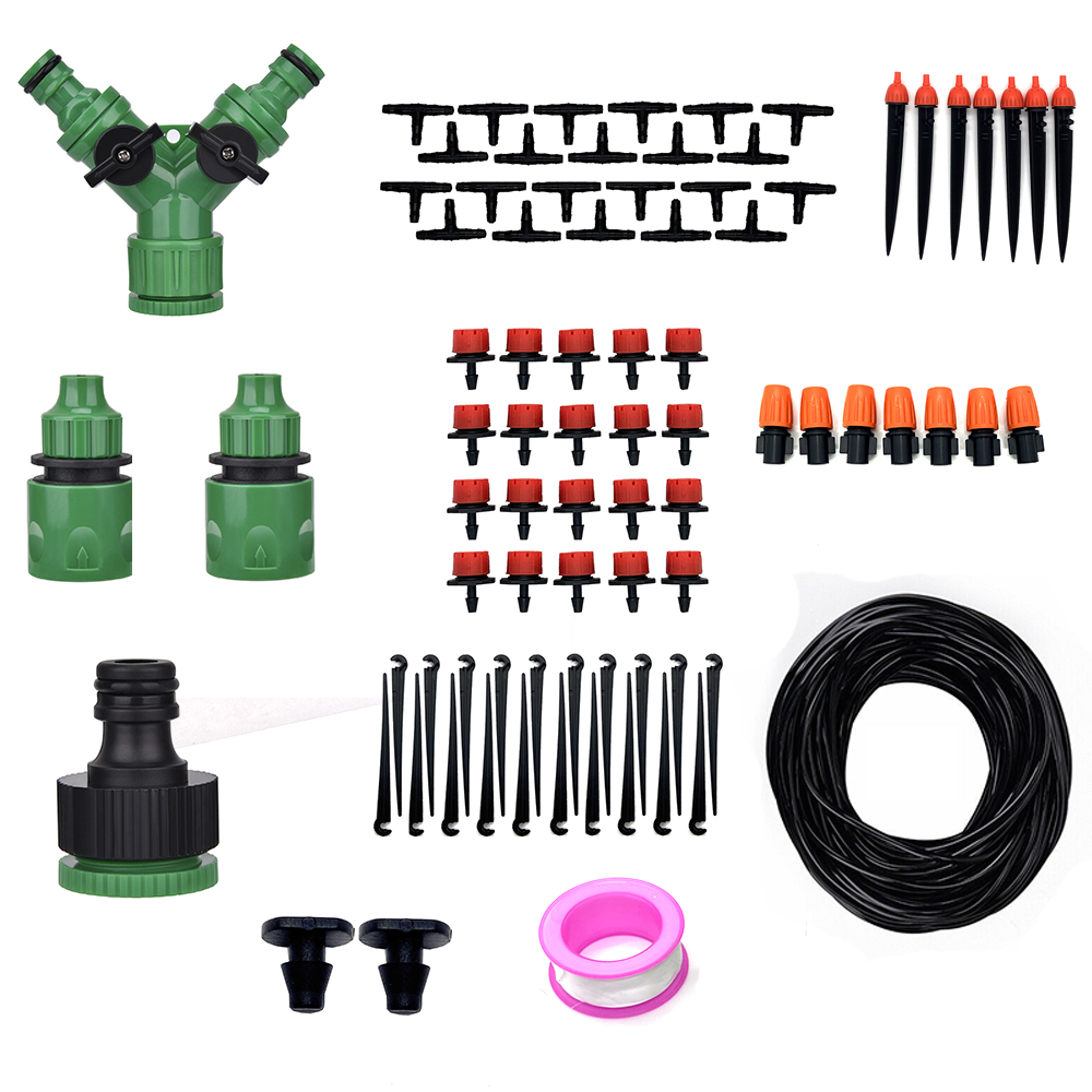 【149 PIECE DRIP IRRIGATION SYSTEM SET】Take proper care of your garden with this garden drip irrigation system. Your purchase includes 149 items including main pipes, branch pipes, faucet connectors, fountain & atomizing nozzles and host of accessories for an all in one, comprehensive kit.