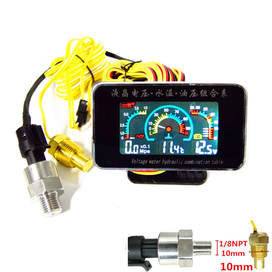Car LCD 3 in 1 Gauge Water Temperature/Oil Pressure/Voltage Gauges With Sensors