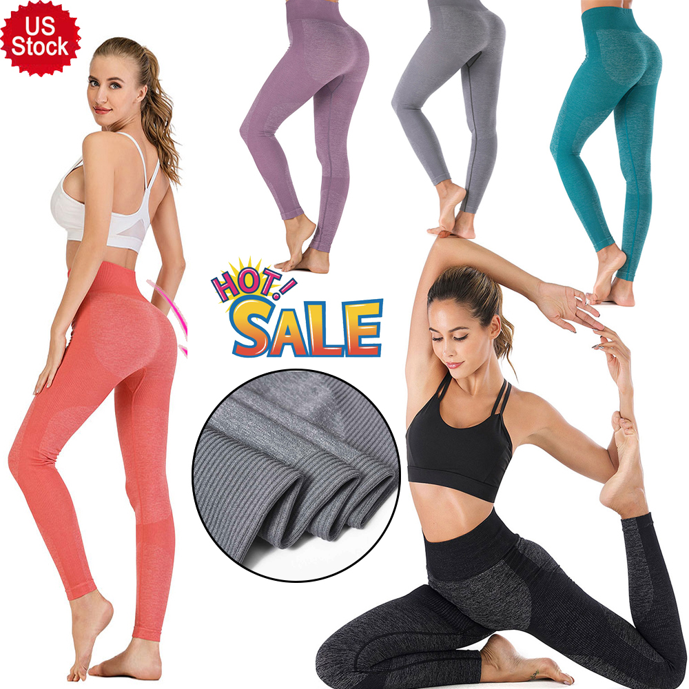 Womens Stretchy High Waist Tummy Control Gym Yoga Pants Leggings Sports Hip Lift