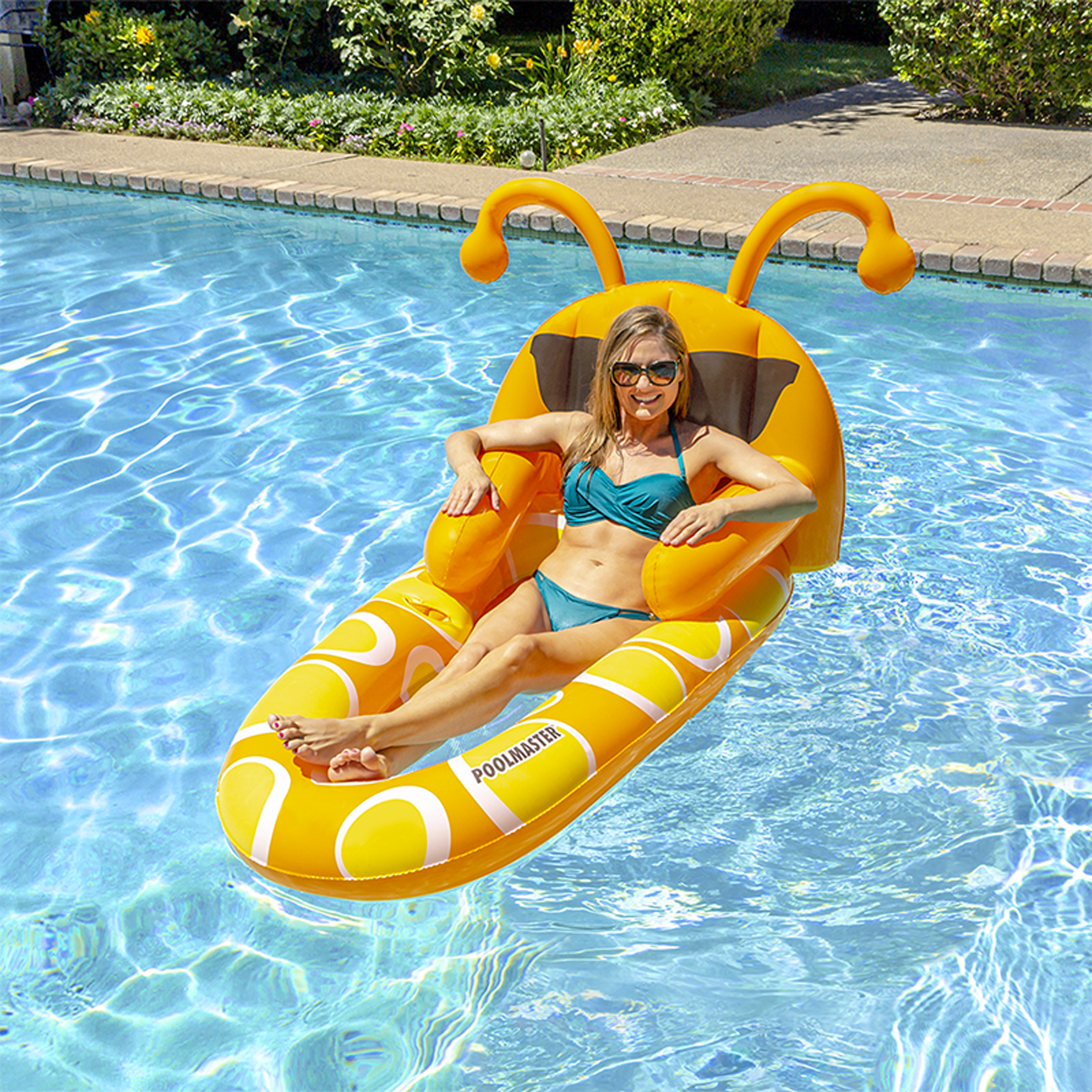 The Waterbug Lounge couldn’t get an COOLER! Adorning the backrest are two large inflatable antennae plus oversized sunglasses design adding all the coolness you’ll need for your next pool party. And, to make this lounge even cooler, there is a built in soft pocket for your favorite beverage along with a large center seat made from comfy mesh to keep the cooling waters flowing while you chill out.