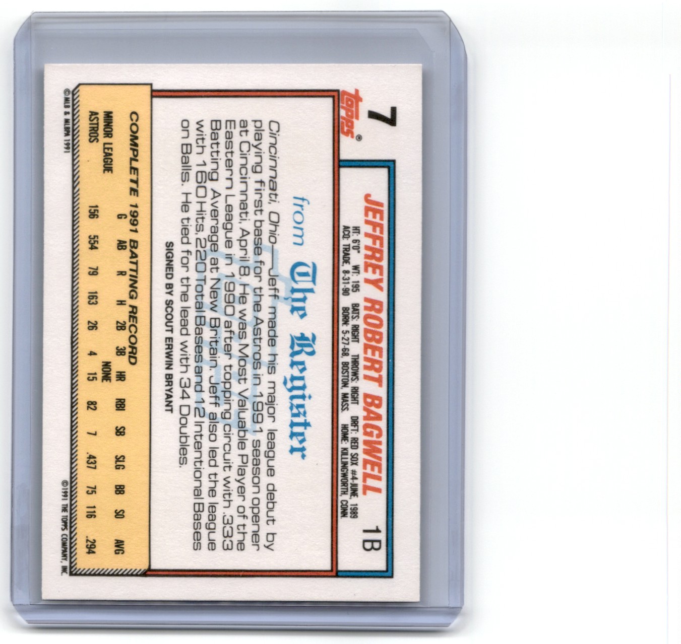 1992 Topps Major League Topps Major League Debut 7 Jeff Bagwell