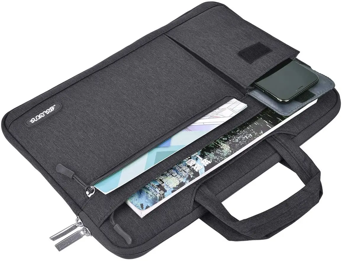 Front flap pocket with hook and loop fasteners closure is great for quick-access items, secure and convenient. Such as cell phone and pens, wallet, keys and other small items. This protective messenger shoulder bag carrying briefcase handbag sleeve case cover bag with pocket is ideal for you to take your laptop out.