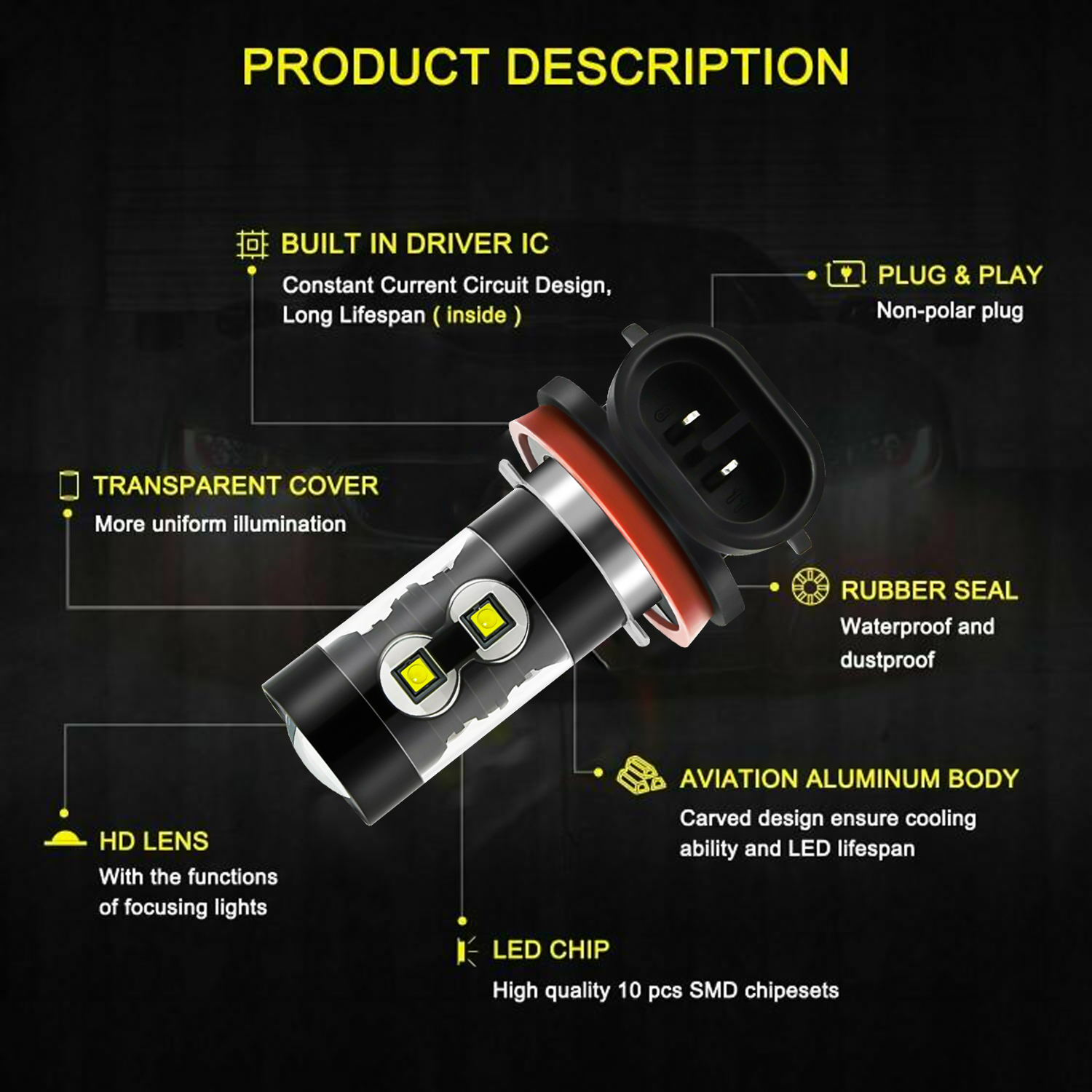 3) We also have custom design led bulbs (Pro series) which can custom fit your vehicle without modification.