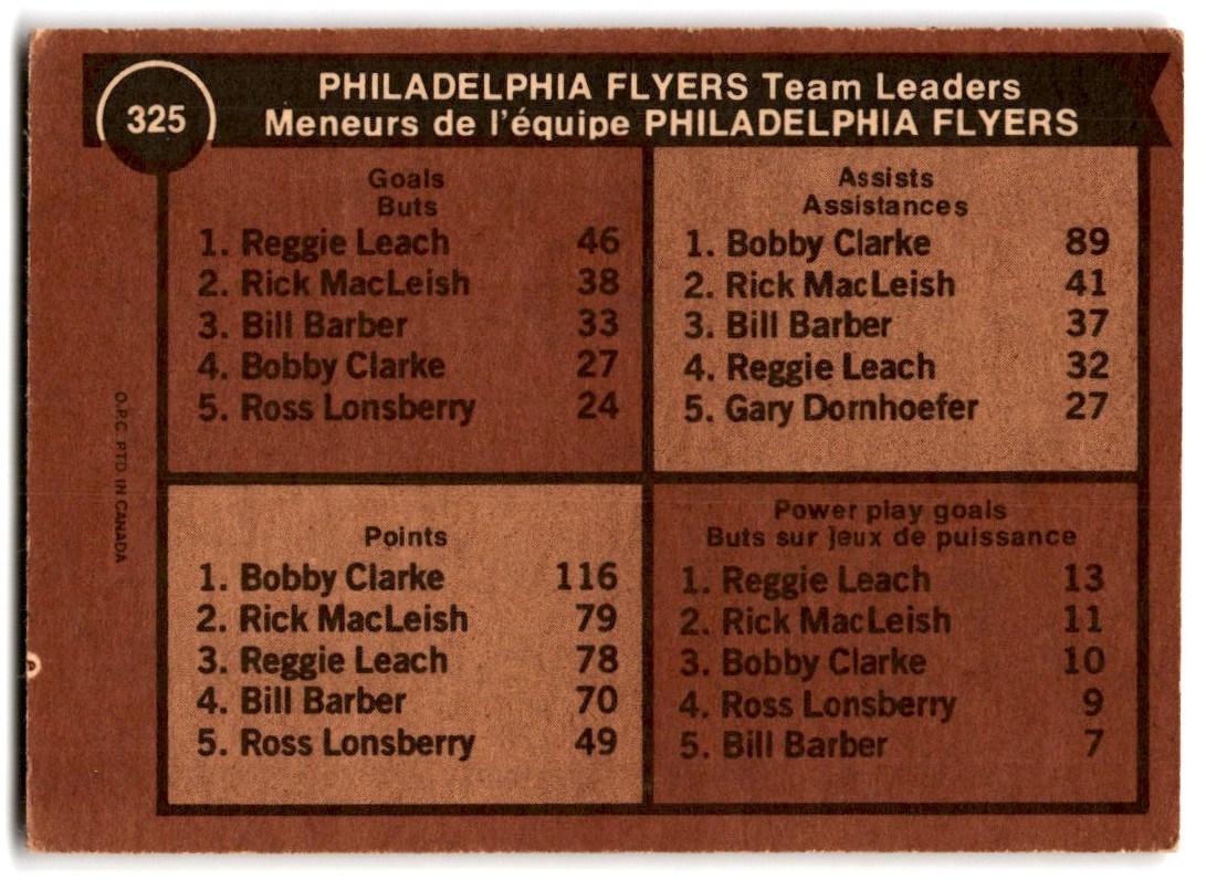 | 1975-76 O-Pee-Chee Philadelphia Flyers Team Leaders/Bobby Clarke B #325 |