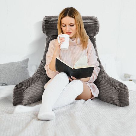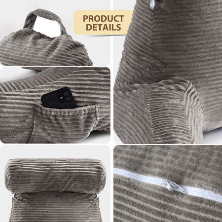 Our back support pillow is designed with a unique blend of shredded sponge and memory foam filling to provide optimal comfort and firm support. With its large, firm backrest, you can use this pillow to support various areas such as your head, back, waist, and legs. It even comes with a detachable and adjustable neck roll for complete neck support. This cushion also includes arm support and a convenient side pocket, making it a perfect choice for book lovers, avid gamers, or anyone who wants to relax in maximum comfort. Additionally, its handy handle allows for effortless transportation to any location. The cover is made of super soft, breathable corduroy fabric that is smooth to the touch and can be easily removed and washed in the machine.