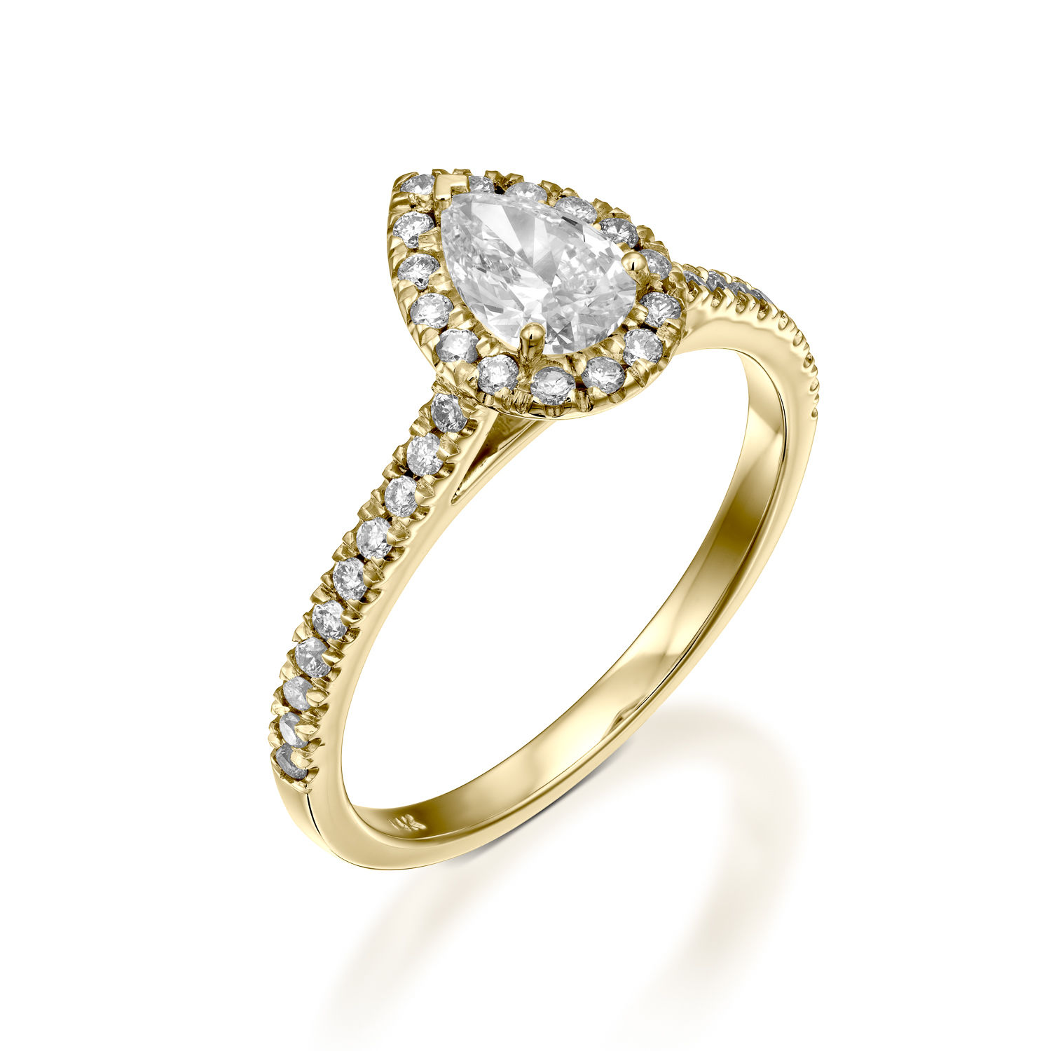 1 Carat Genuine Pear Shape Cut Diamond Engagement Ring H/SI2 14K Yellow Gold