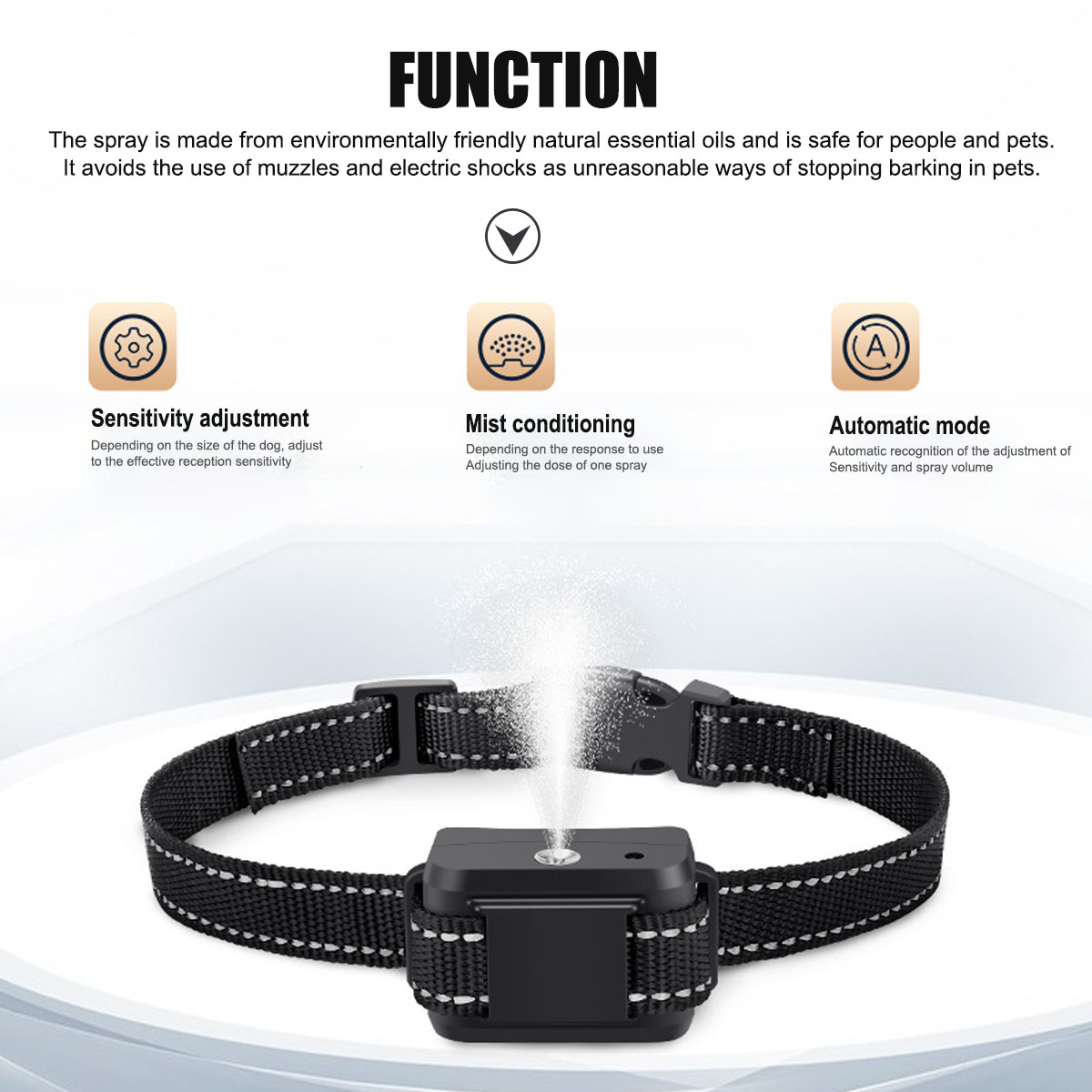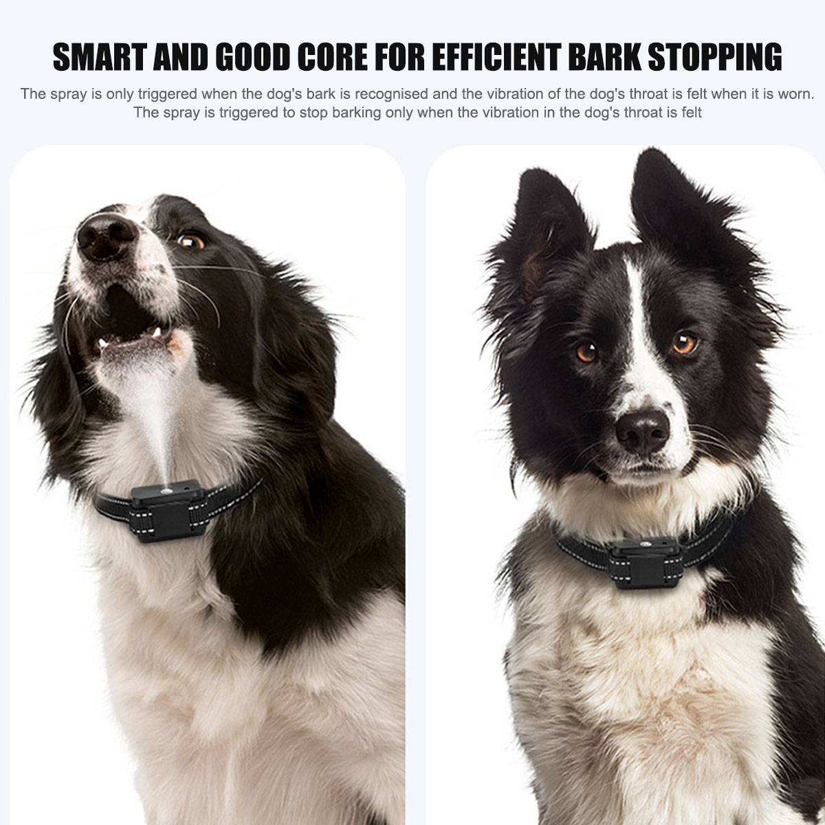 【Humane & Free from Remote]: Our anti-dog barking collar can intelligently detect the dog's bark and automatically release harmless citronella spray to stop barking. Only barking twice or more in 10 seconds will trigger the spray which is More Humane, Safer and More Effective than electric shock collars.【Not Included citronella spray】