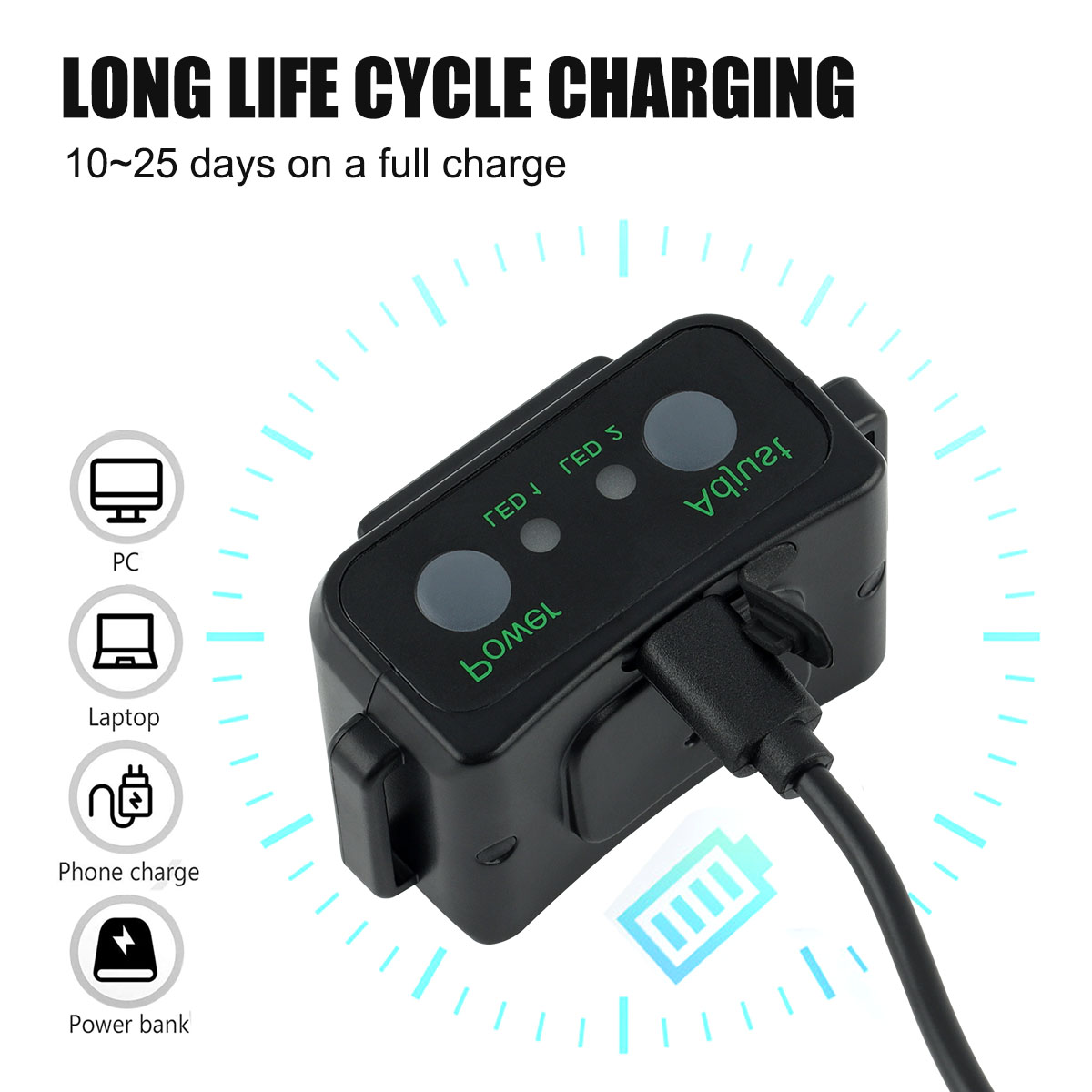 Battery life: 10-25 days (full charge)