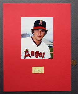 Check it out...Here's an UNCOMMON 8 1/2" wide by 11" tall AUTOGRAPH & photo of legendary 1977-78 California Angels star Ken Brett (Died in 2003)-The page features a VINTAGE closely cut signature that looks like it was cut from an autograph album or index card way back in the day that is tipped to a larger red backer with a photo of Brett on front-Closely cut signature has some tape staining in the corners (See photos for clarification)- Comes from the collection of legendary Chicago area collector Marvin Hecht who collected autographs in the Chicagoland area for a half a century.