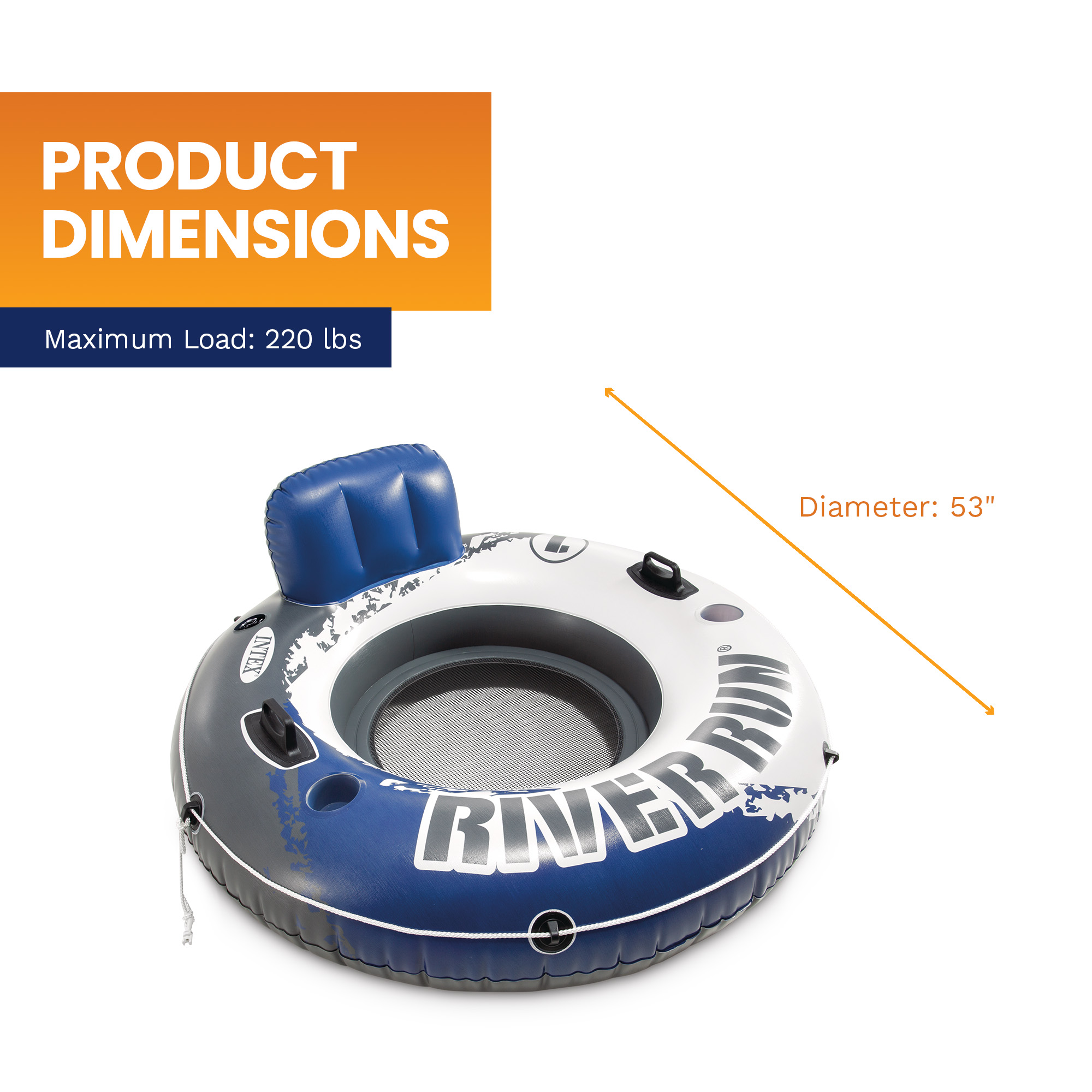 The Intex River Run allows you to relax in style, with your favorite beverage being held conveniently at your fingertips in the built-in cup holder. With the separate air chambers in the backrest, the single-rider inflates quickly for ultimate relaxation while floating around the water.