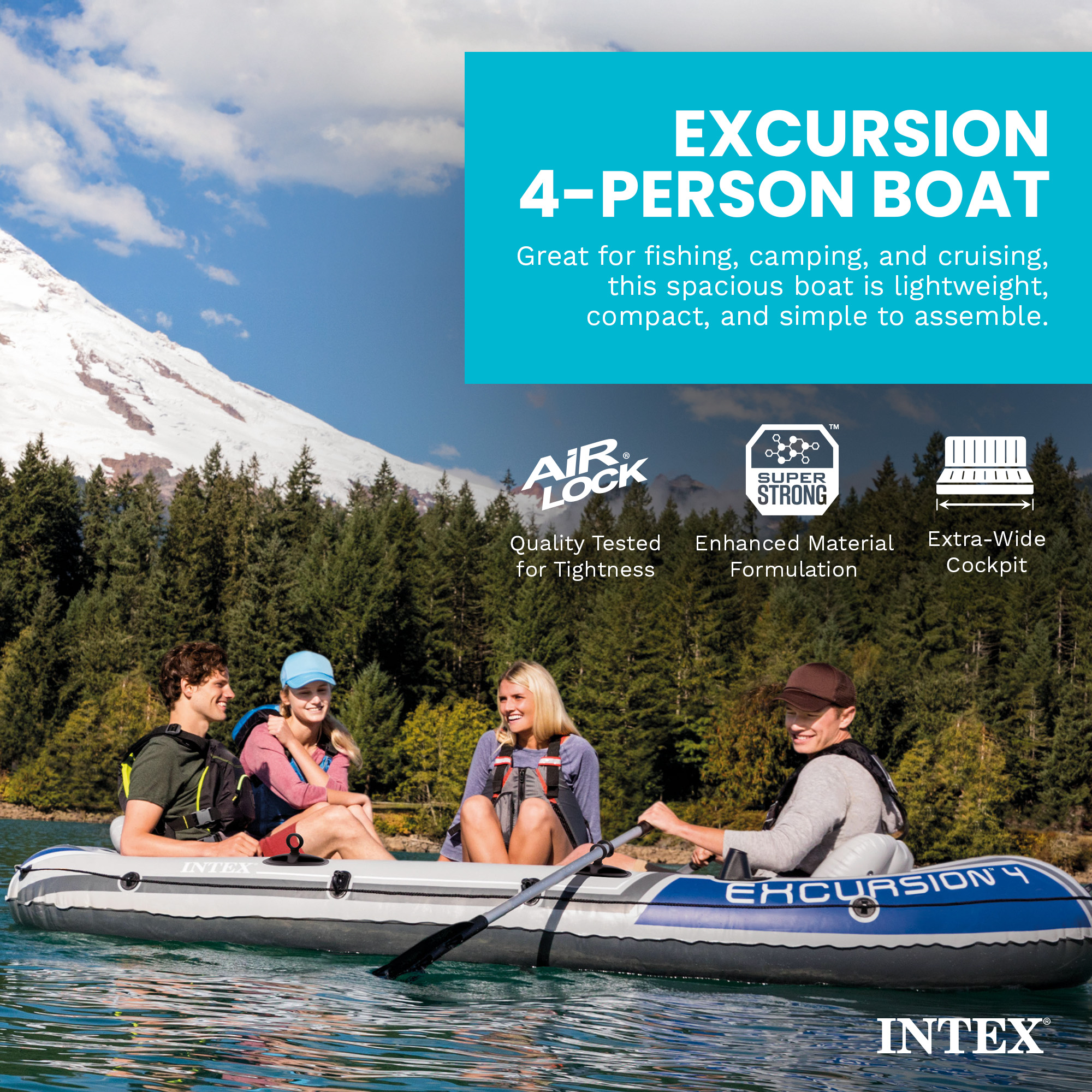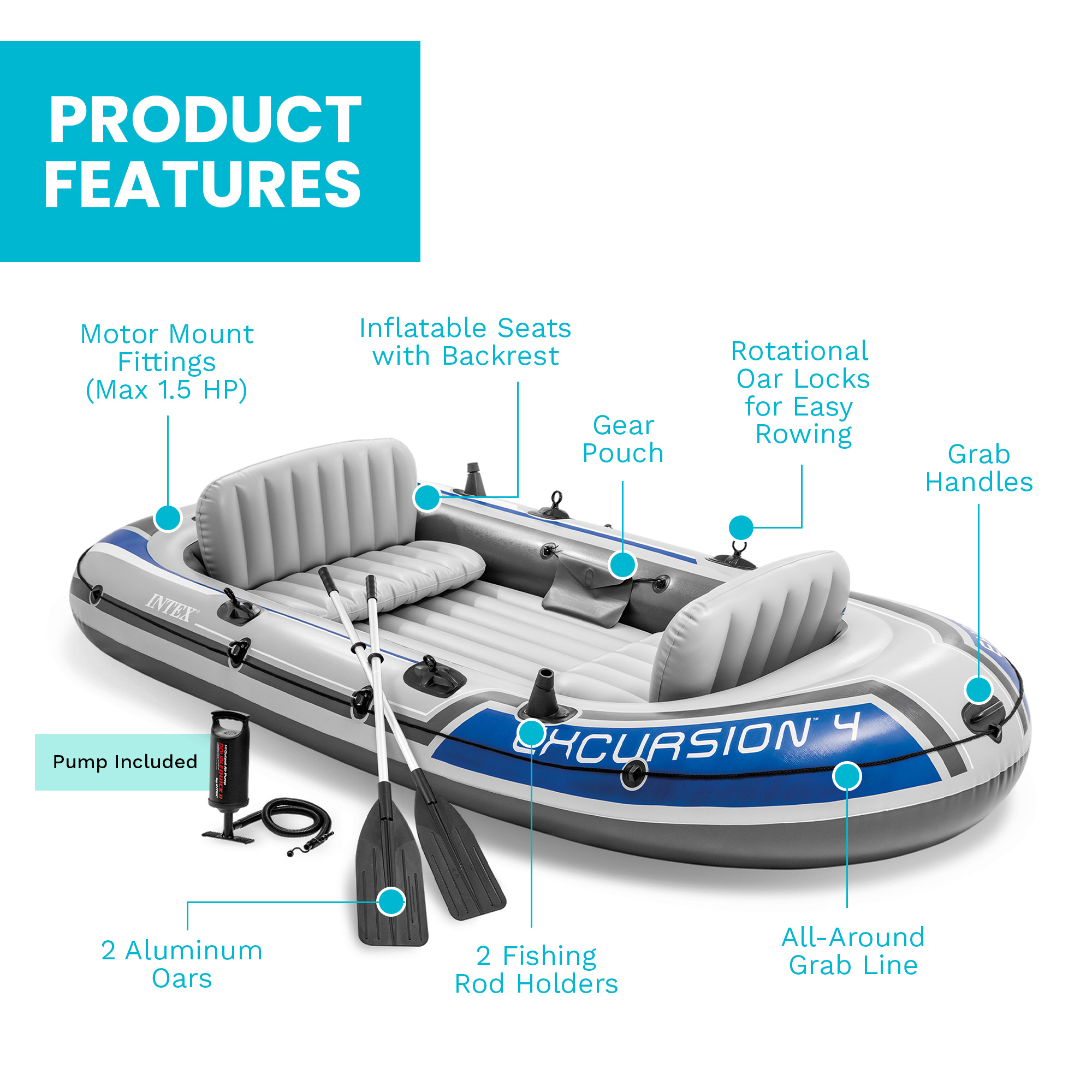 Escape the daily grind and leave the bustle behind with the Intex Excursion 4 Person Heavy Duty Inflatable Boat Set. Whether you're an avid angler, a nature enthusiast, or simply seeking a leisurely getaway with friends or family, this Intex inflatable boat offers an unforgettable experience.