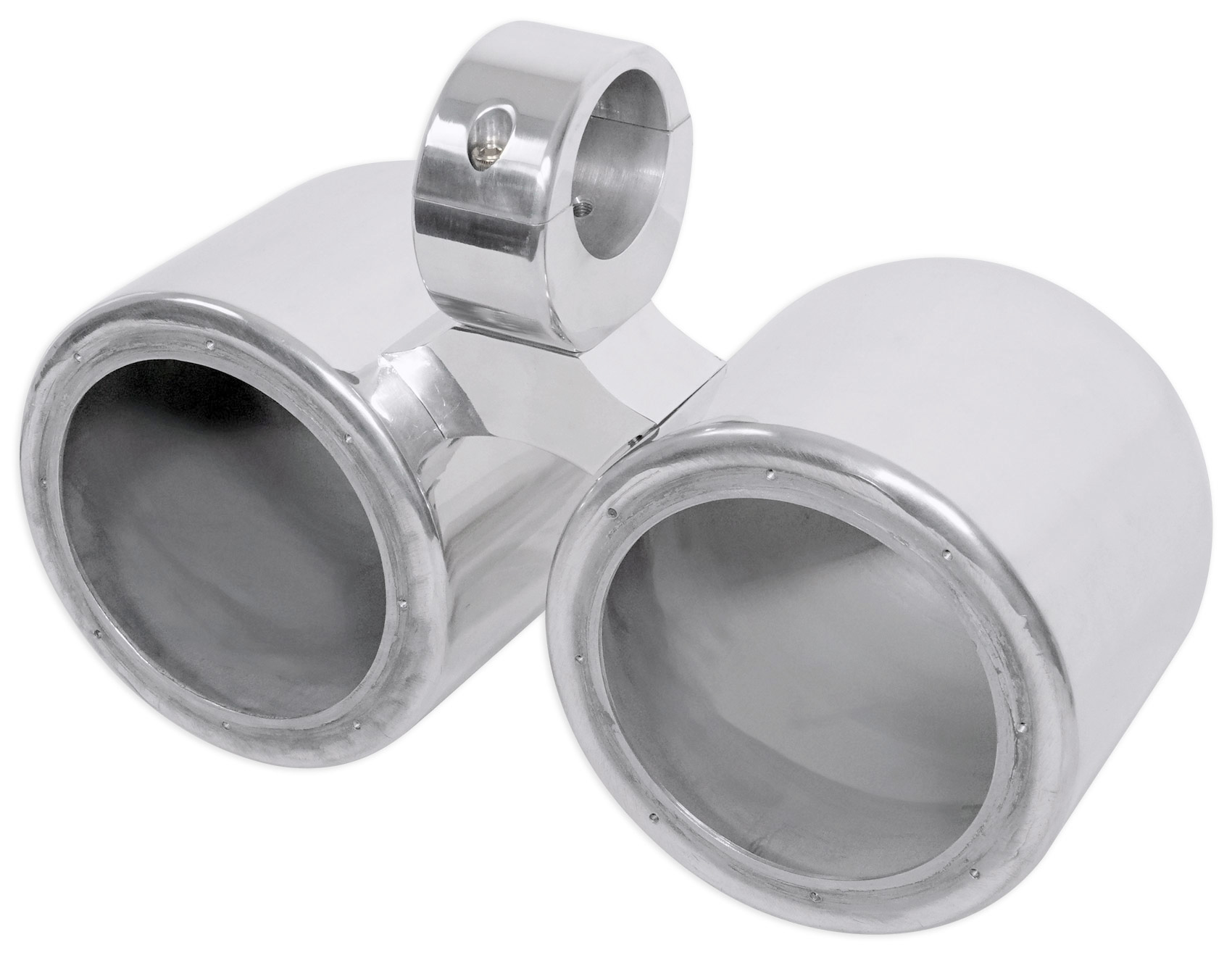 - Rockville DMAC65S polished chrome aluminum double can wakeboard tower enclosure