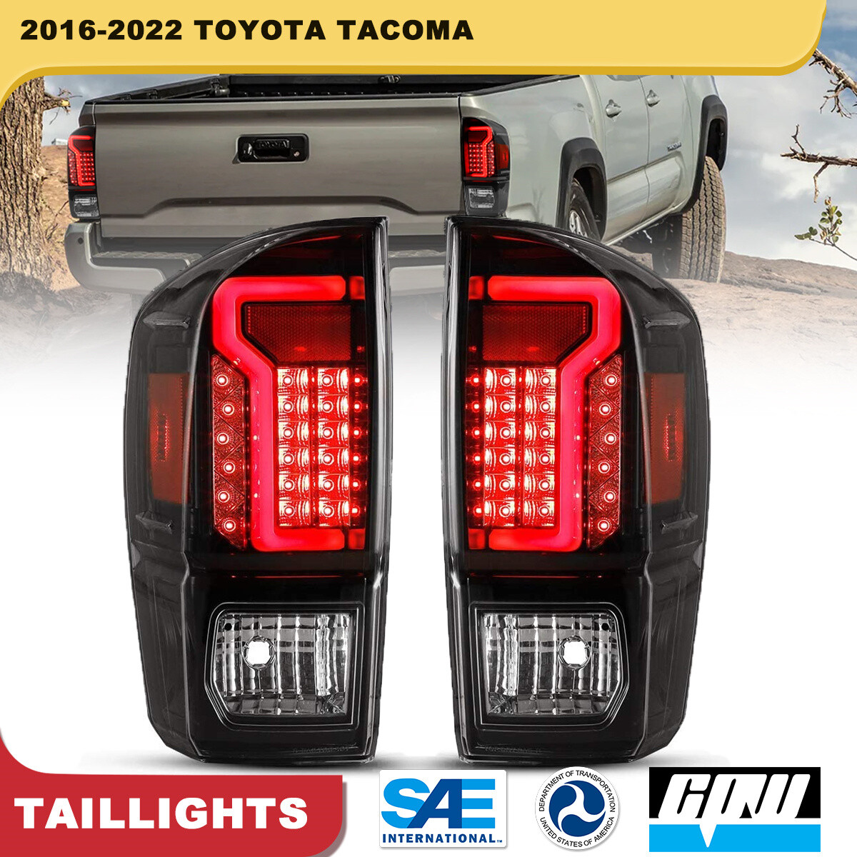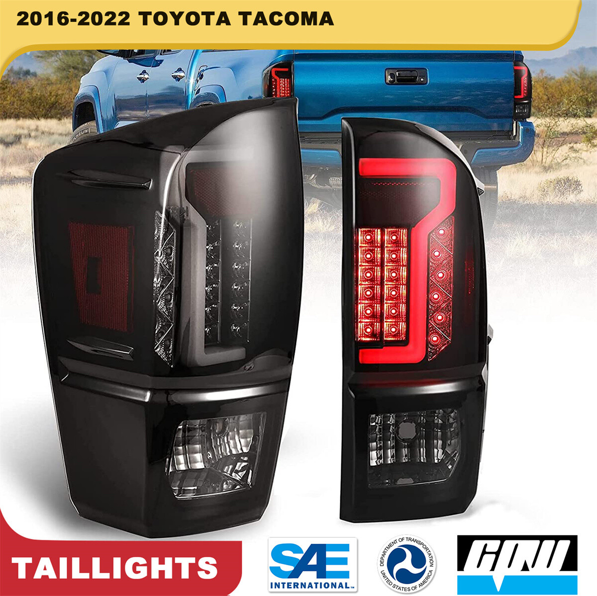 【Easy Installation, Plug and Pay】Tail lights for 2016-2022 toyota tacoma which perfectly replace factory parts and are designed for quick and easy installation without drilling or modifications. LED tails lights are designed to work without any special wiring.