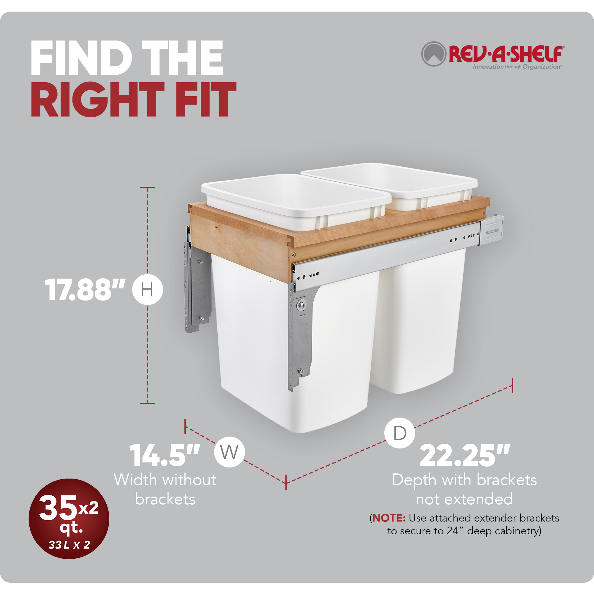 Only one pullout trash container series has stood the test of time and that is Rev-A-Shelf® Top Mount Series Waste Containers. The Top Mount series features beautiful fully assembled dovetail wood construction and full-extension slides for total access and easy removal of your trash bins.