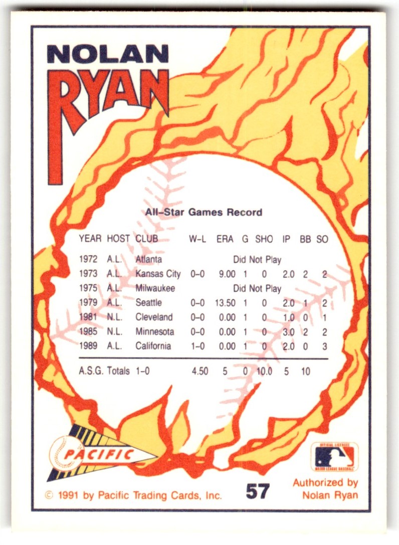 | 1991 Pacific Express Nolan Ryan #57 Texas Rangers |