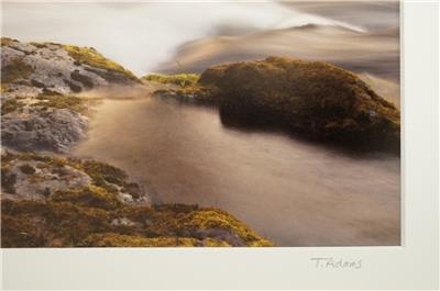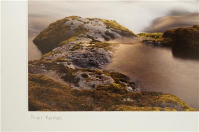 Tom Adams Photography Rapids Rocks Siuslaw River Oregon Matted Photo Art 8 x 10. The photo size in the matte is 4.75" by 6.75" - Will fit in a standard frame. Titled and signed in pencil by the photographer.