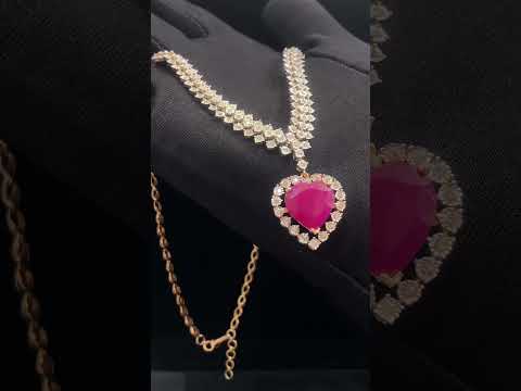 13,94 Carati Rotondo Brillante Taglio Naturale Diamanti Cuore Rubino Collana In 585 14K Oro. Regalo perfetto per tutte le occasioni !!