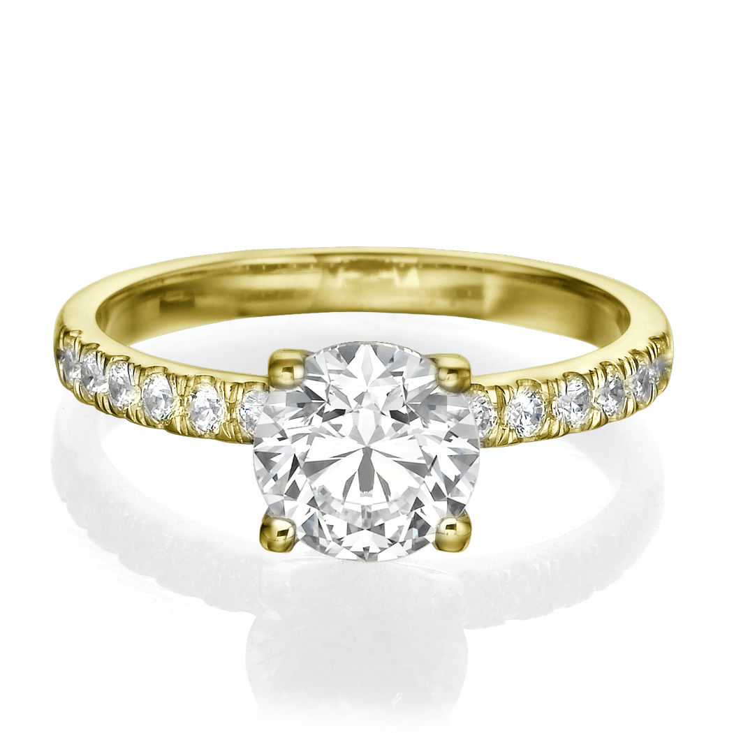 Diamond Ring Sidestones 0.8CTW (Center Stone 0.3ct) in 14K Yellow Gold. Free Shipping - 30 Day Returns - Appraisal Certificate Included. This beautifully designed diamond ring has been meticulously crafted to perfection. Exclusively designed by the Brillianteers Diamond Studio guaranteeing its quality and excellence. Each stone is hand picked and inspected making sure that it has the ultimate sparkle and brilliance. Our unique classic designs will be sure to draw compliments anywhere you go and will be cherished for a lifetime.