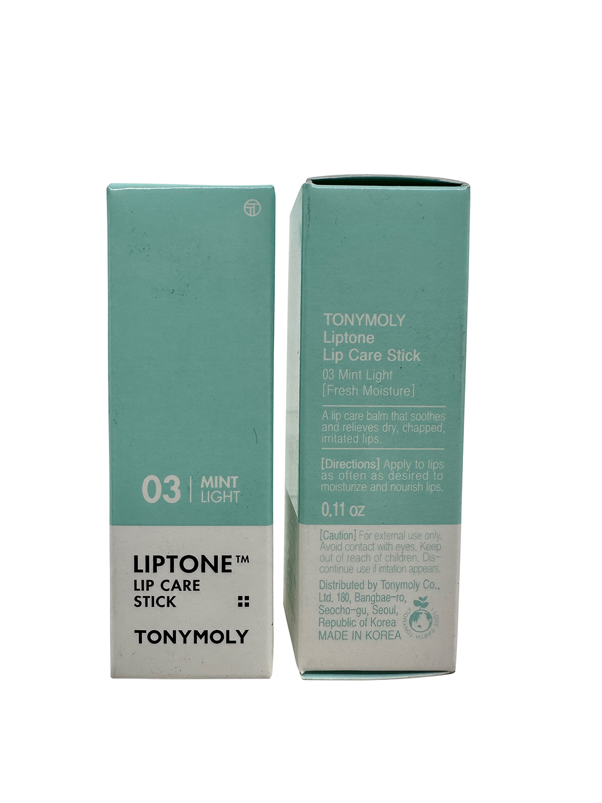 TonyMoly Liptone Lip Care Stick 03 Mint Light is a nourishing and protective lip balm from one of the top selling Korean beauty lines. Provides hydration and nourishment to the lips, helping to keep them moisturized and soft. The balm itself is infused with nourishing ingredients such as fruit extracts, vitamins, and botanical oils, which help to replenish moisture and protect the lips from dryness. Made with Coconut Oil, Avocado Oil, and Peppermint Oil. Leaves lips feeling comfortable, nourished and plump. How to use: apply directly onto lips during the day as needed. The balm is smooth and creamy, allowing for easy application and a comfortable feel on the lips. It can be used throughout the day, as needed, to maintain lip hydration. TonyMoly is a world recognized skincare and cosmetics brand. Started in 2006 in Korea, it has become one of the top selling Korean beauty lines, known for its fun and unique designs and high quality ingredients. It is also well known for its affordability and proven results.