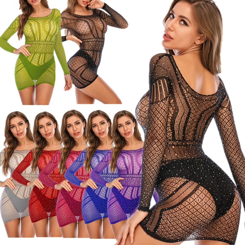 Womens Open Cups Hollow Out Fishnet Babydolls See-Through Stretchy Mini Dress.