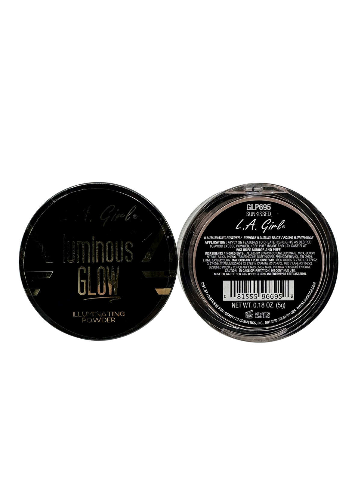 L.A. Girl Luminous Glow Illuminating Powder GLP695 Sunkissed helps give your skin a radiant and luminous pearl like finish. The shade GLP695 Sunkissed, has a multi dimensional pearlescent effect with shimmery particles that create a sparkling appearance on the skin. Perfect to be used to highlight specific areas of the face, such as the cheekbones, brow bones, or cupid's bow. Comes with an easy to use powder puff that facilitates application. Easily washes off, will not clog pores. To apply, use the puff and gently apply to areas you wish to add highlight to.